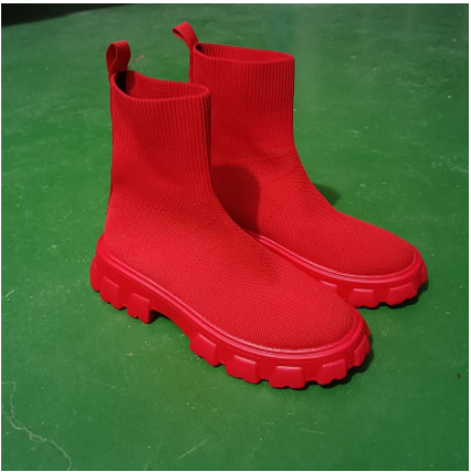 Qengg Qengg New 2023 Martin Round Boots Knit Ankle Boots Fall And Winter Thick Bottom Heel Low Top Fly Large Size