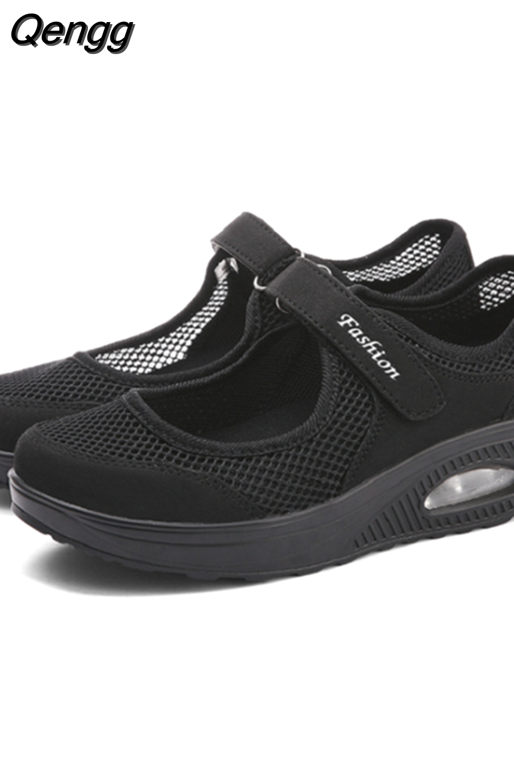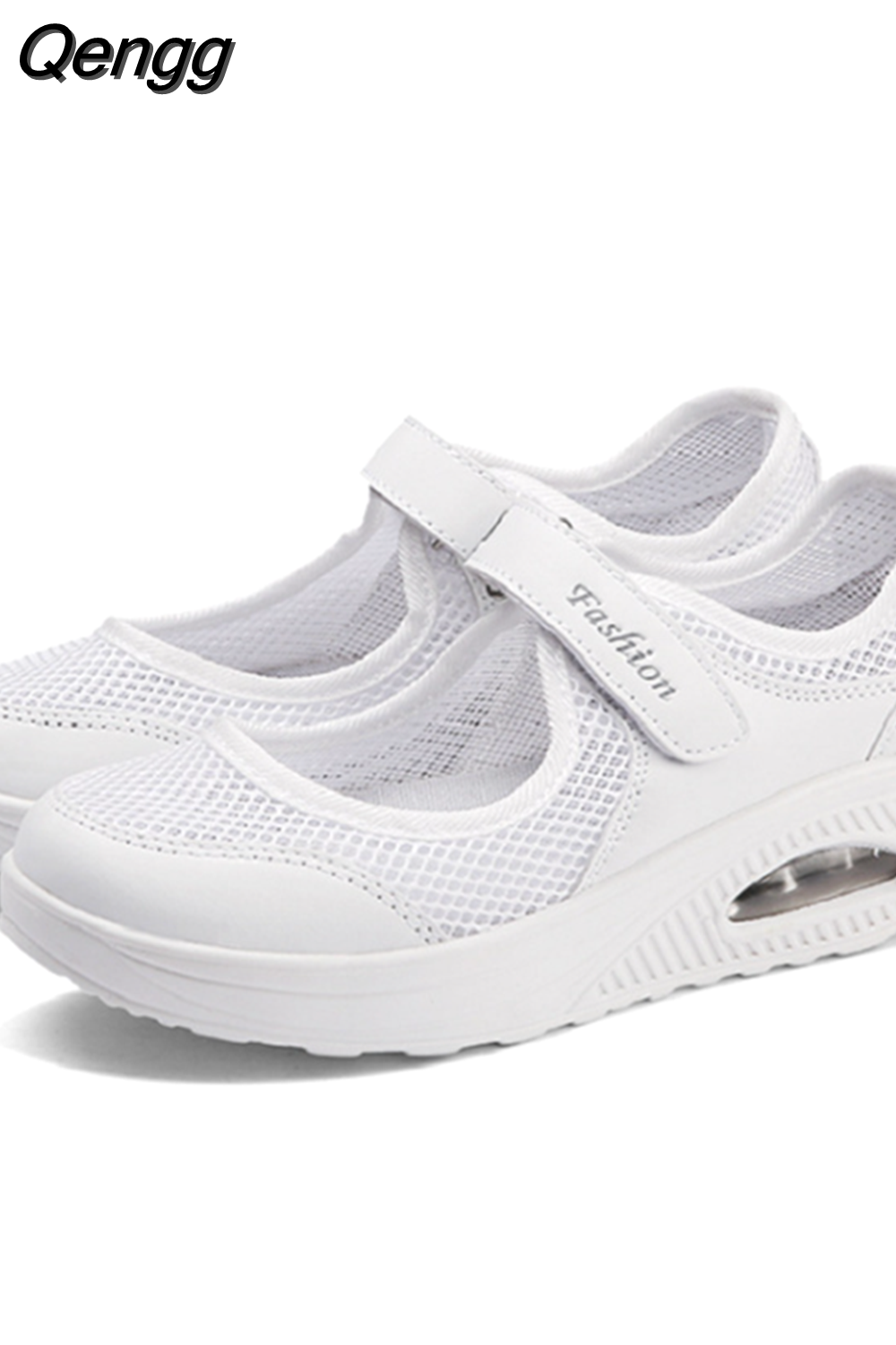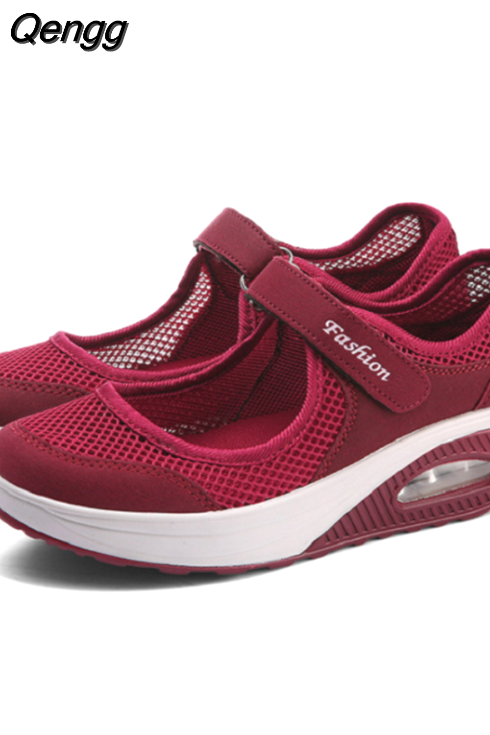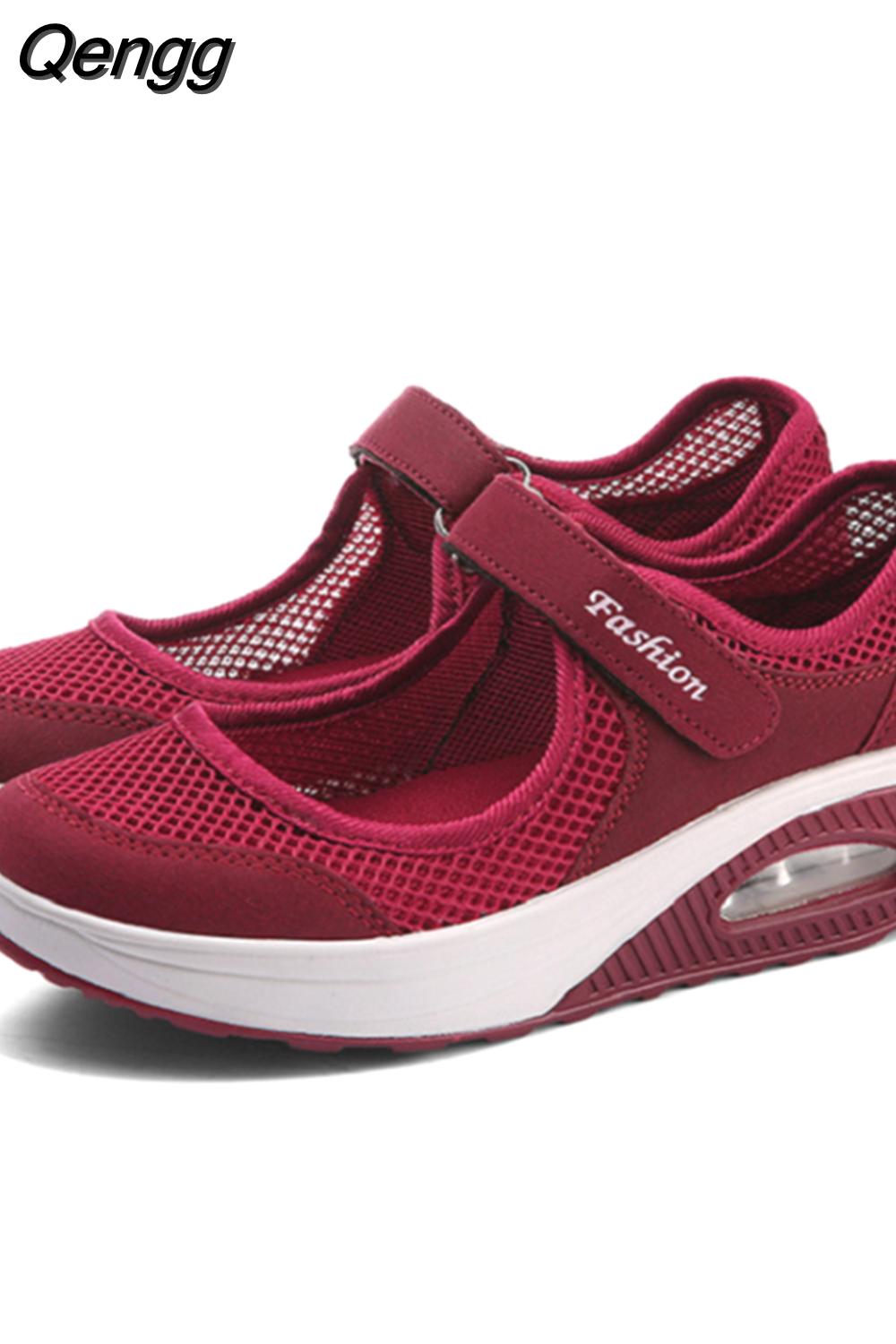 Qengg Running Sneakers Women Fashion Mesh Breathable Casual Wedge Platform Hiking Shoes Female Tenis Feminino Zapatillas Mujer