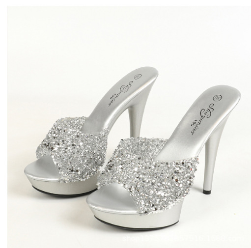 Qengg Qengg Word With Slippers Female New Summer Fashion 13CM15CM Versatile Sexy High Heels Fine Heel