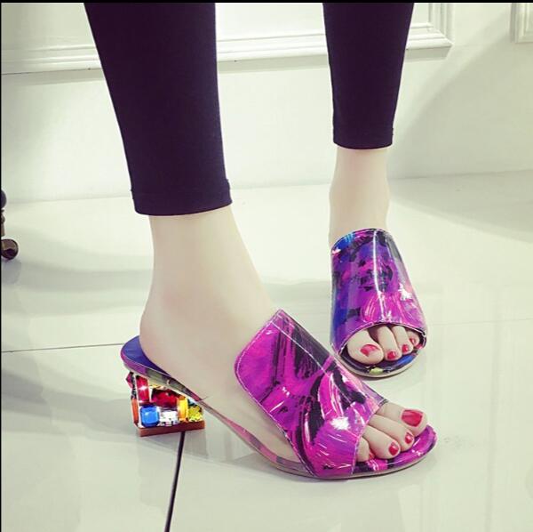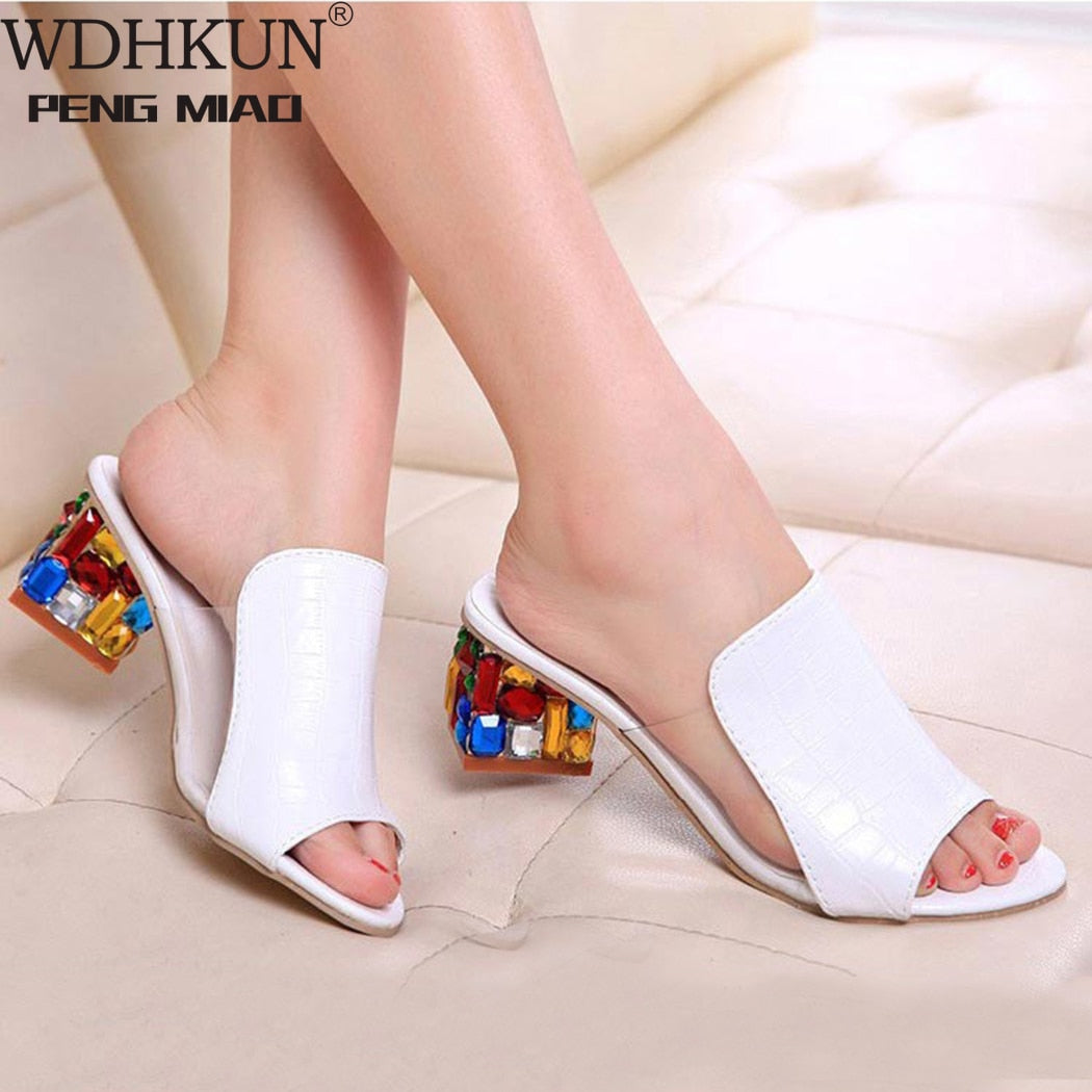 2020 Brand Big Size 41 Elegant Crystals Chunky Heels Summer Women's Shoes Woman Sandals Leisure Shoes Women Slippers