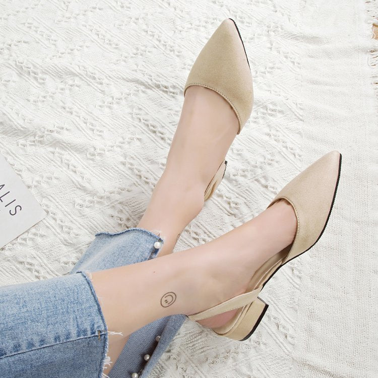 2020 Hot Sandalia Feminina Short heel with low heel High heel Pointed shallow mouth suede sandals Women word buckle Single shoes