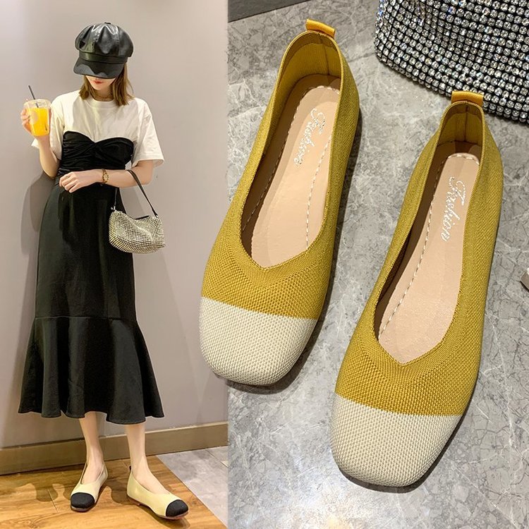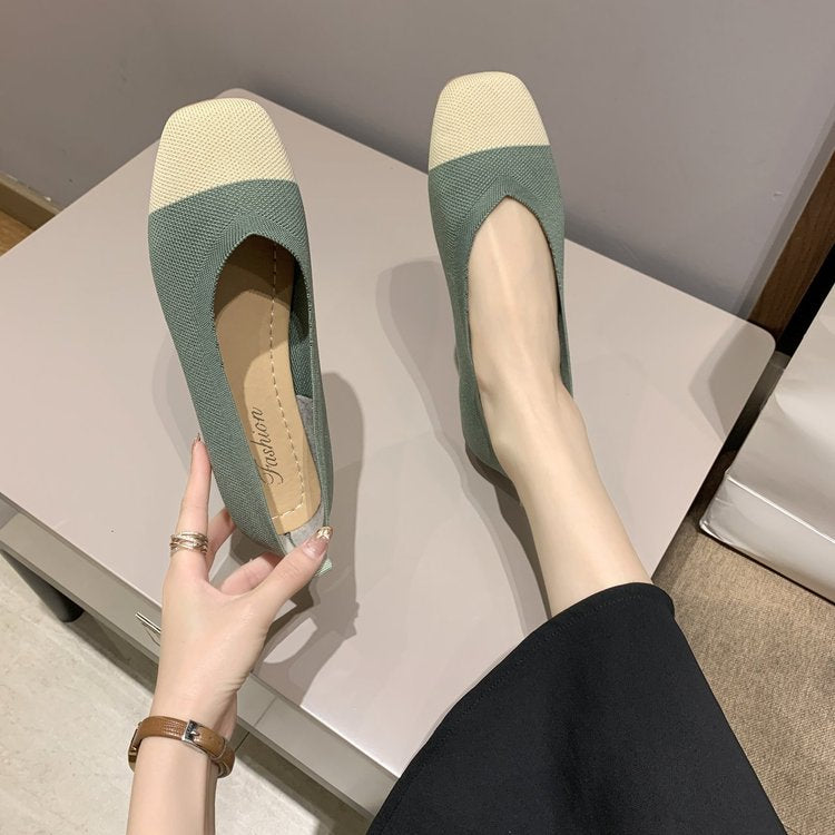2020 NEW Women Slip On Flat Loafers Patchwork Square Toe Shallow Ballet Flats Shoes knitting Casual Flat Shoes Ballerina Flats