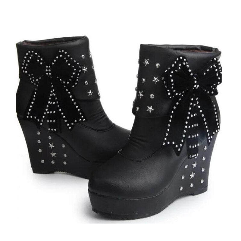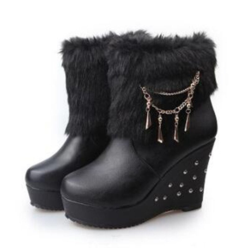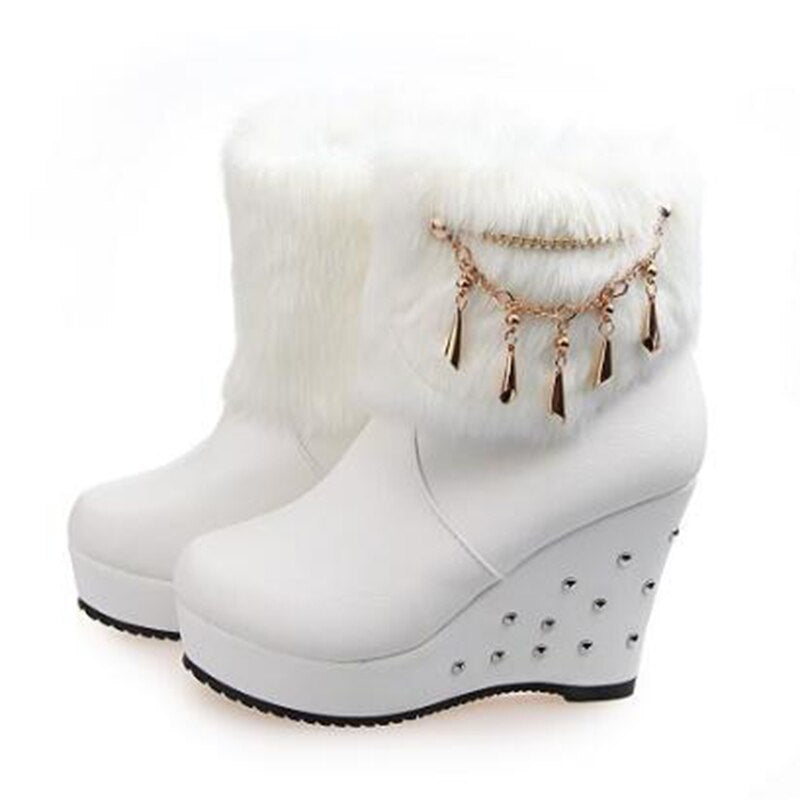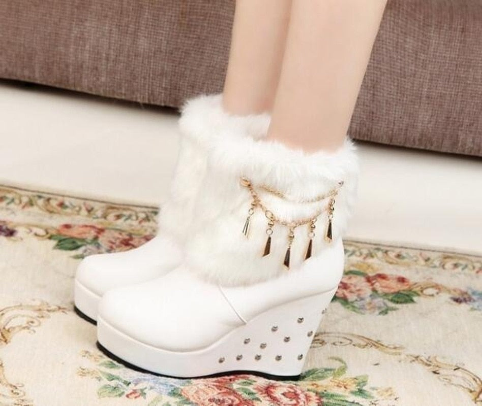 2020 Wedge Women Boots Beaded Winter Women Shoes Platform Warm Fur Shoes Woman Ankle White Snow Boots WBS4015