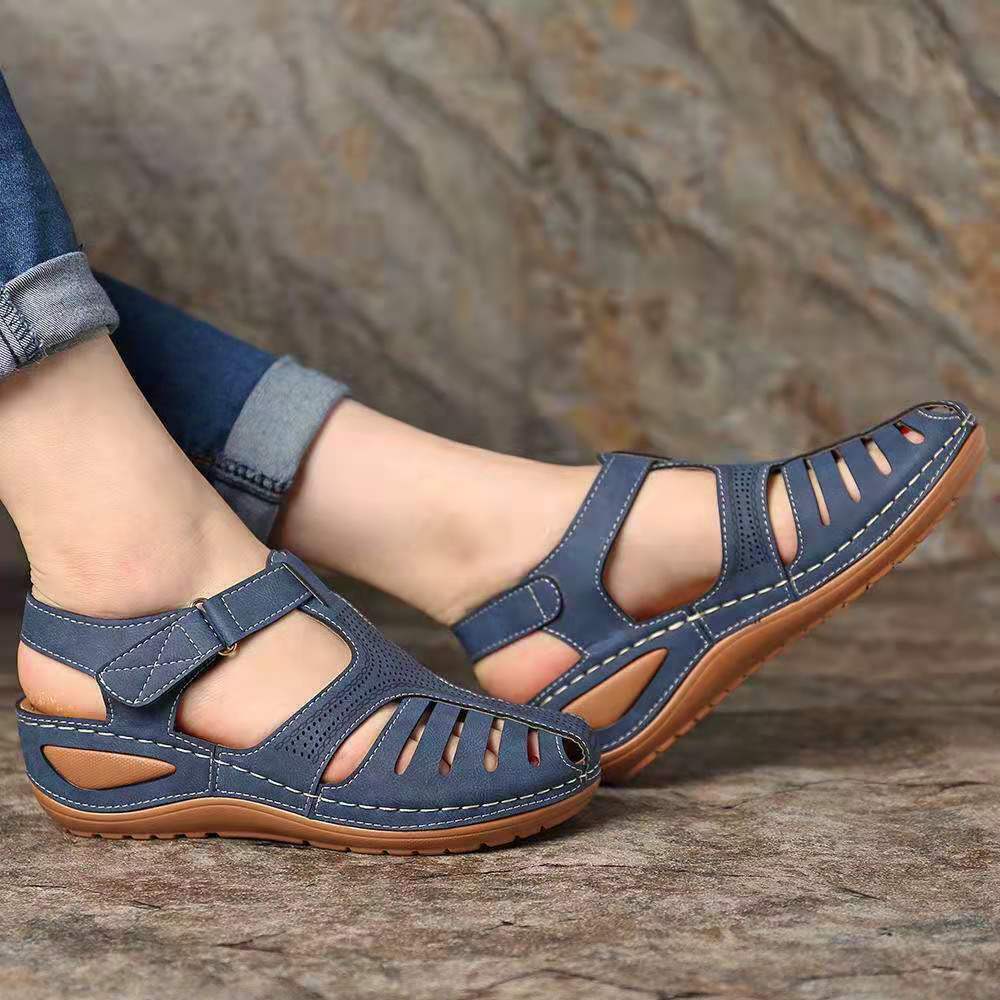 2020 Women Sandals Summer Ladies Comfortable Round Toe Ankle Hollow Sandals Female Soft Sole Shoes Drop shipping Plus Size 35-43