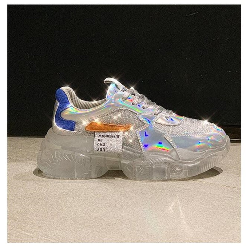 2020spring Trend Women Transparent Sneakers Harajuku Platform Woman Shoes Laser Jelly Casual Shoes Shining Shoes Running Shoes