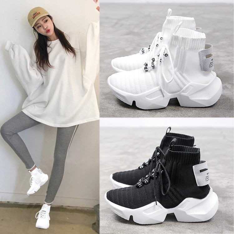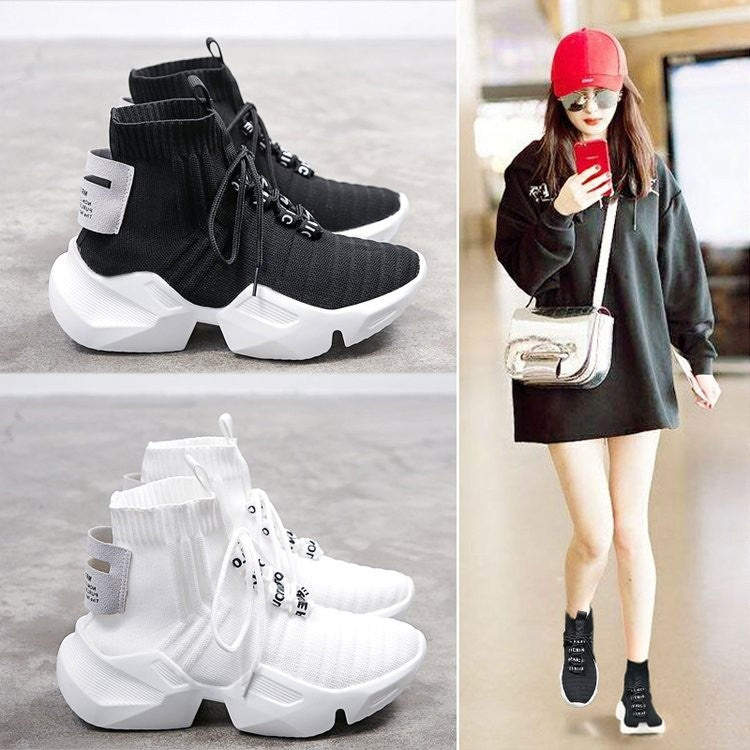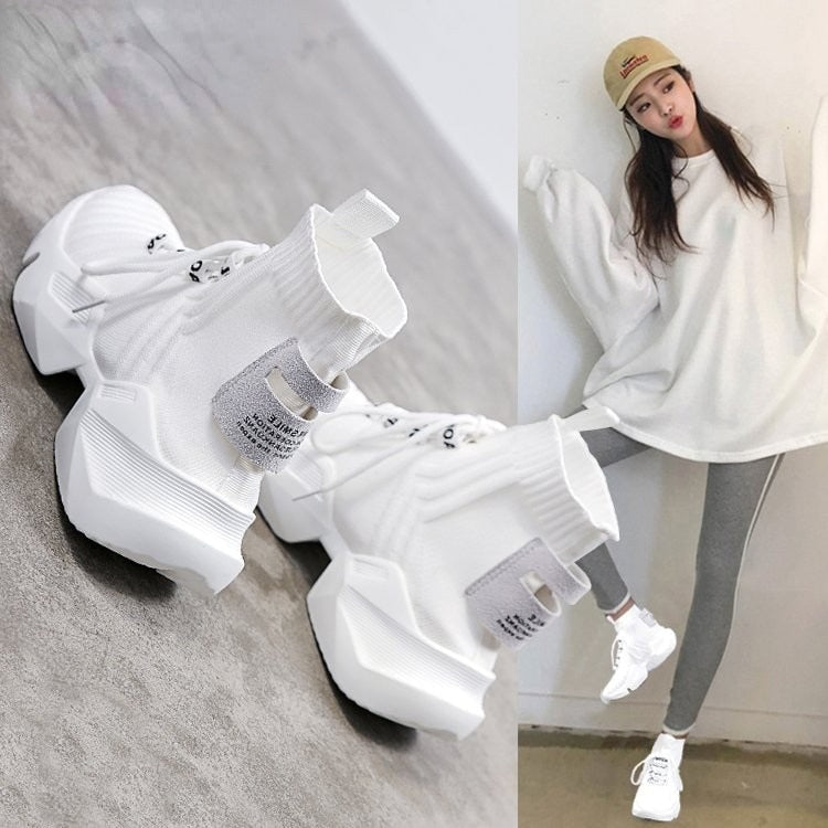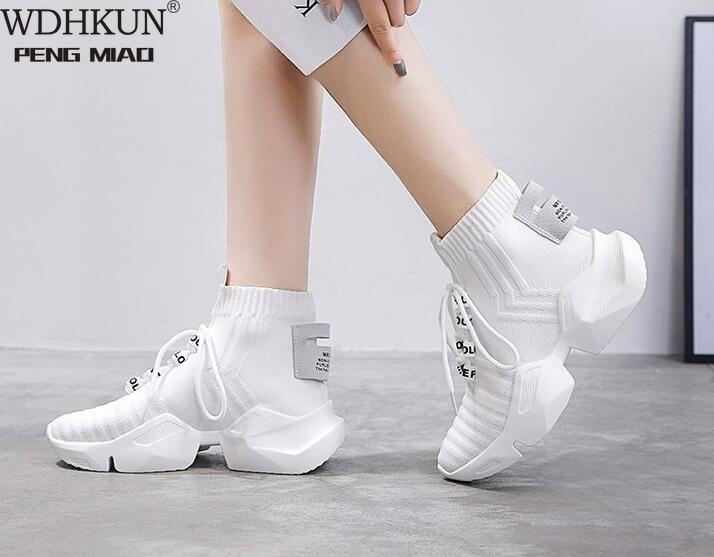 2021 Autumn New High-top Platform Sneakers Women Knitted Casual Shoes Woman Sneakers Chunky Tenis Feminino Womens Shoes Size 41