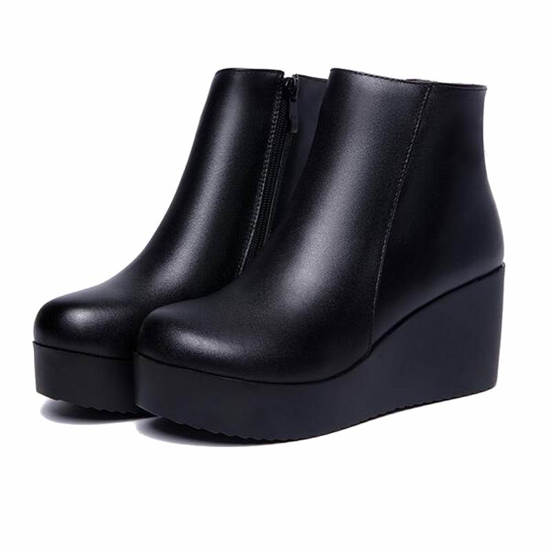 2021 Leather Autumn Winter Boots Shoes Women Ankle Boots Female Wedges Boots Women Boot Platform Shoes Warm