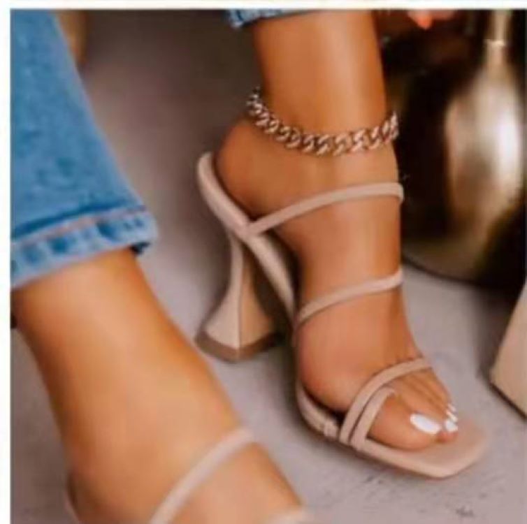 2021 New Summer Women Sandals Square Toe Ladies Heel Mules Sexy High Heels Sandal Slippers Female Fashion Woman Shoes