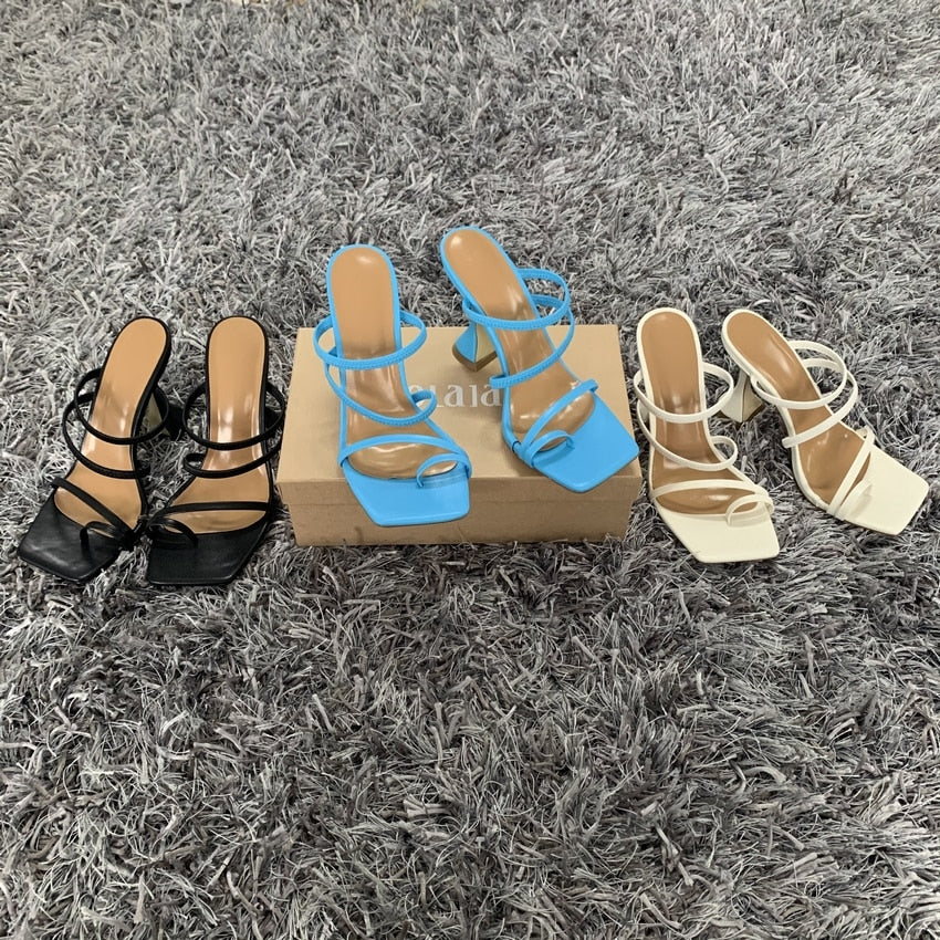 2021 New Summer Women Sandals Square Toe Ladies Heel Mules Sexy High Heels Sandal Slippers Female Fashion Woman Shoes 10.5CM