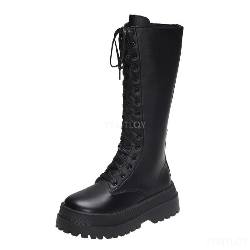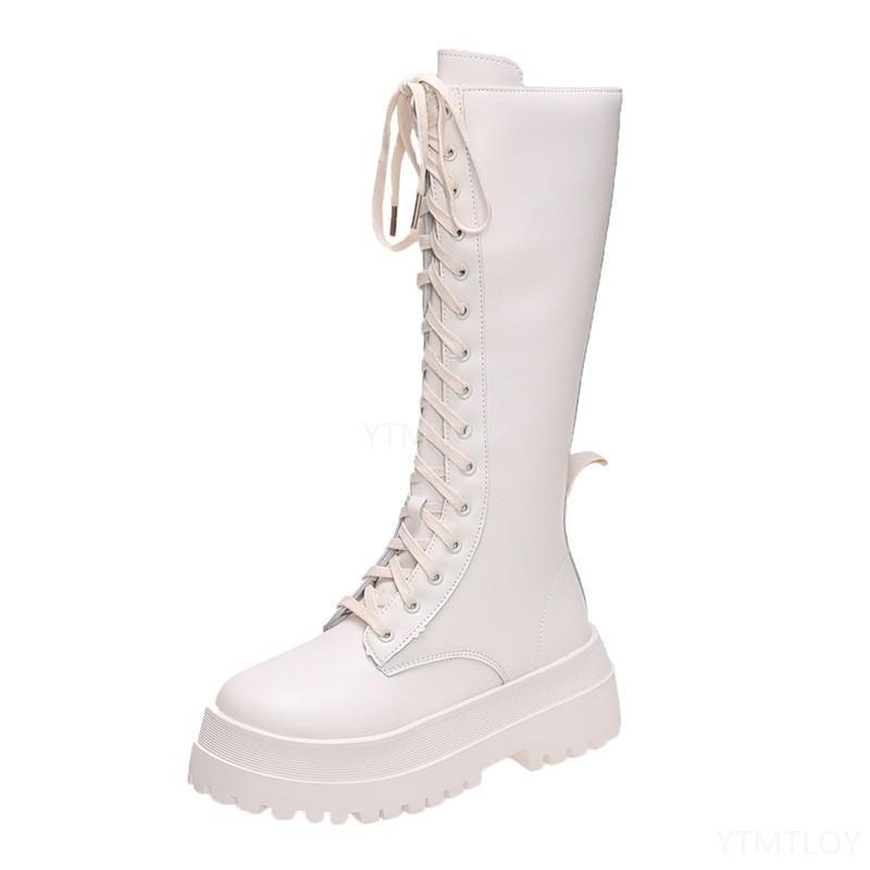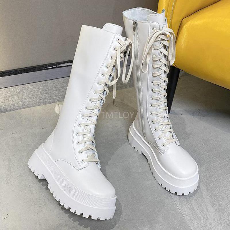 2021 New Thicken Winter Knight Boots Women Knee High Long Square Heel Retro Thick Motorcycle Black White Botas Mujer