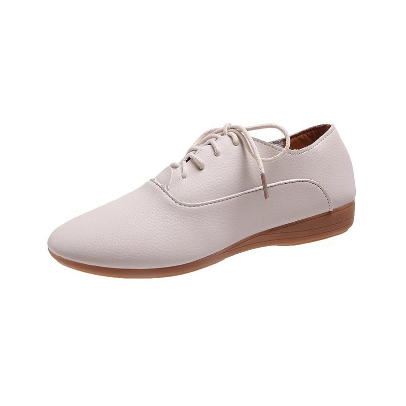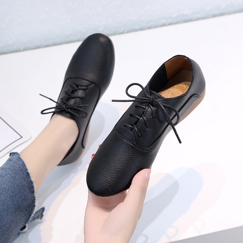 2021 Spring Women Oxford Shoes Ballerina Flats Shoes Women Genuine Leather Shoes Moccasins Lace Up Loafers White Shoes