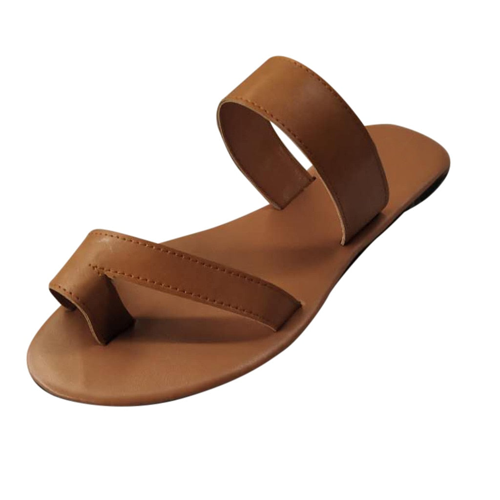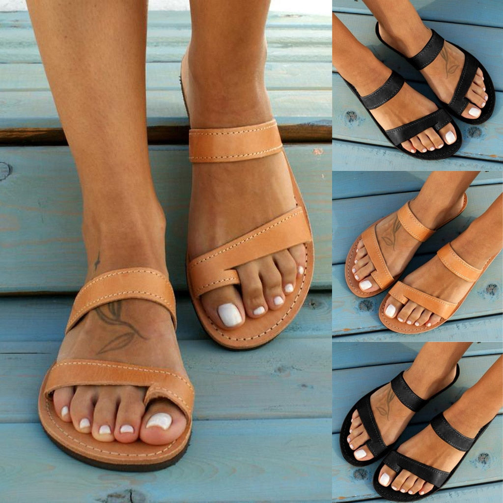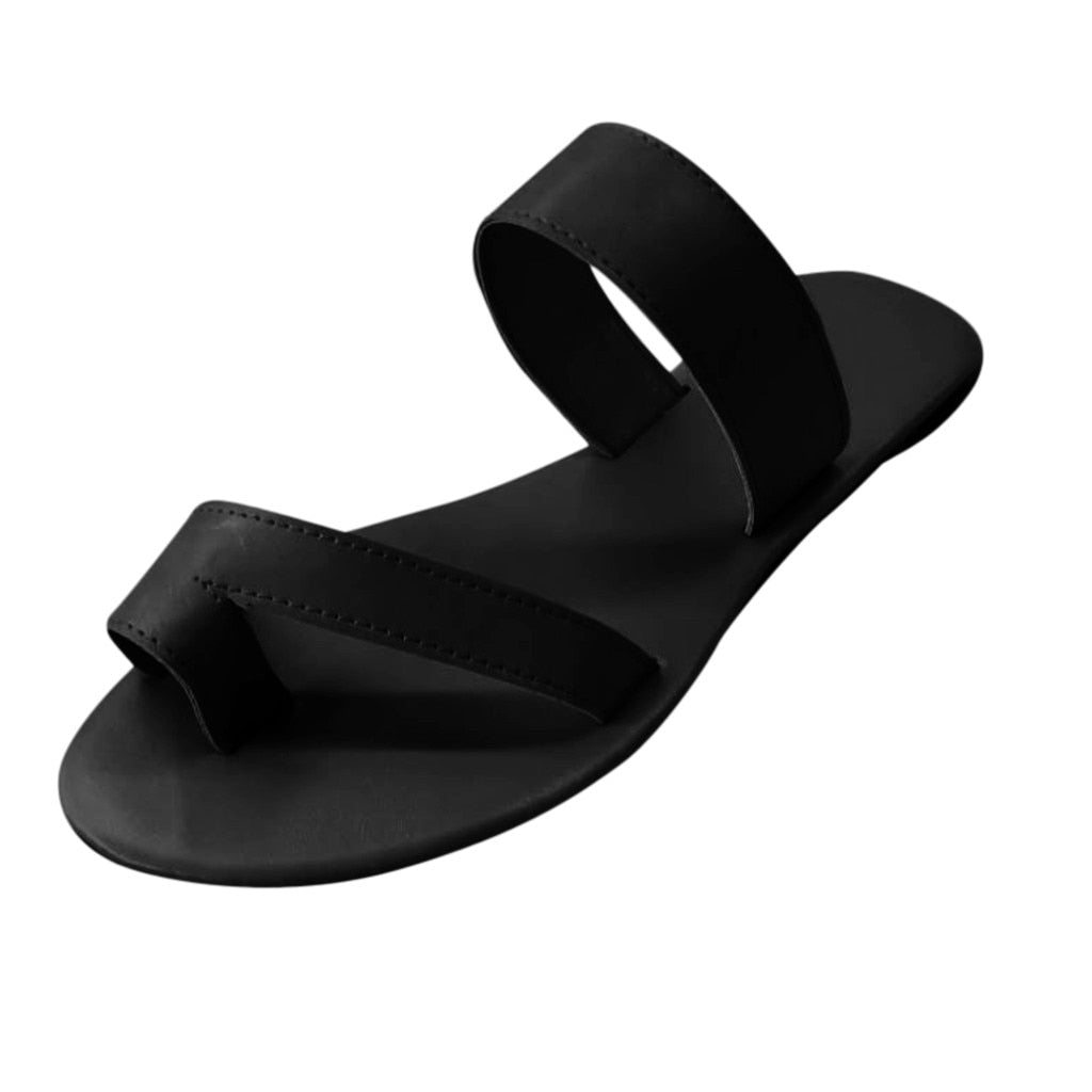 2021 Summer Fashion Women's Solid Color Leather Comfortable Flat Flip Flop Sandals Casual Open Toe Sandals Slippers Shoes
