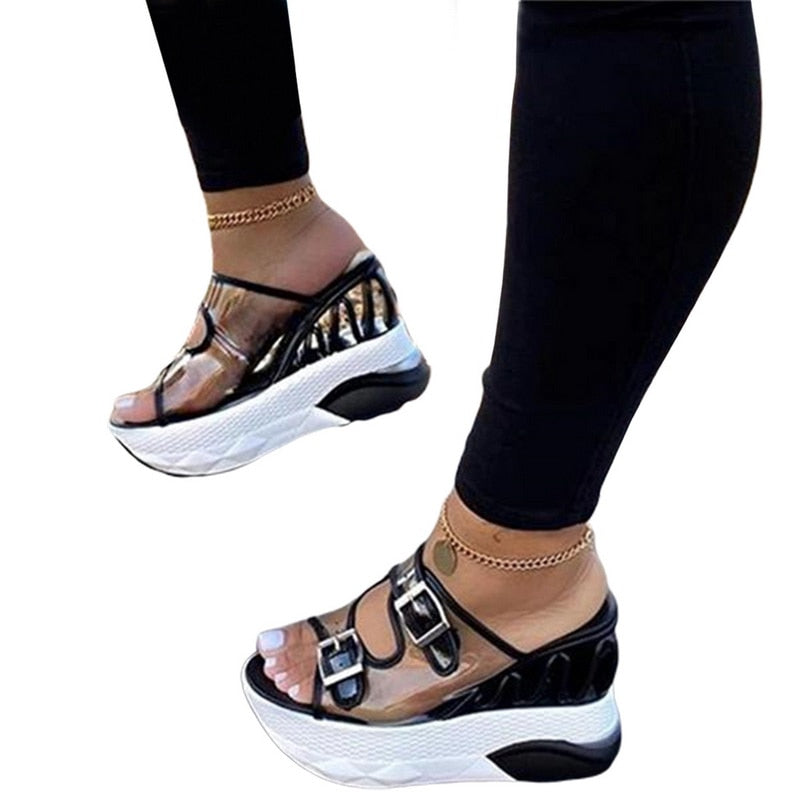2021 Summer Woman Sandals Female Wedge Belt Buckle Transparent High Heel Large Size Shoes Platform Waterprooof Fashion Slipper
