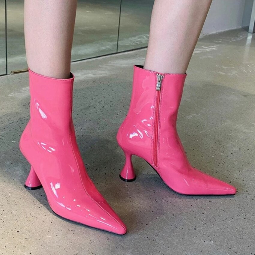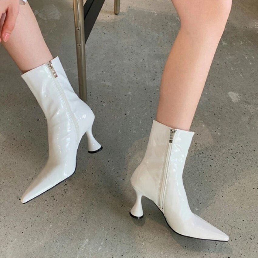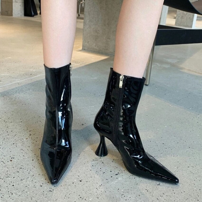 2021 Winter Fashion Women Boots Ladies Thin High Heel Pointed Toe Zipper Ankle Boots Patent Leather Female Short Boots