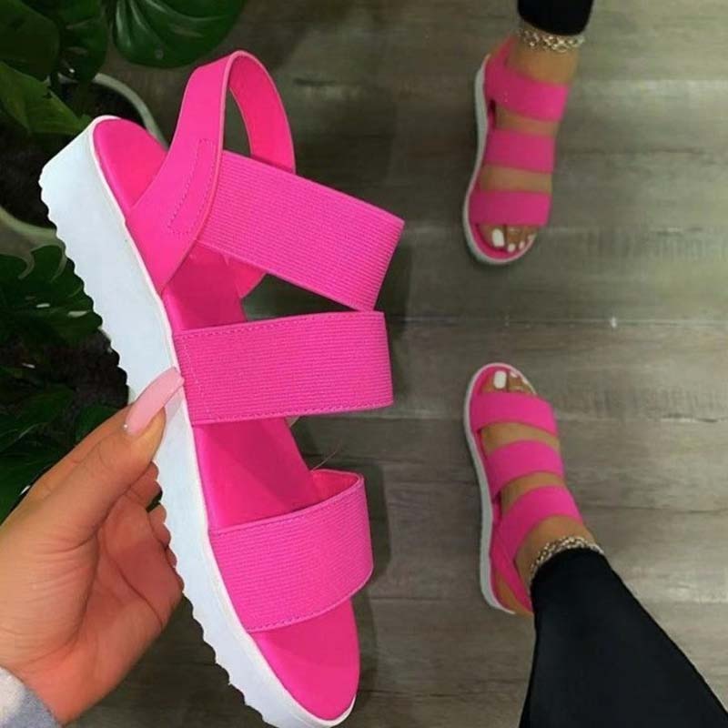2021 Woman Summer Sandals Candy Color Open Toe Flat Shoes Women Elastic Band Party Platform Women's Sandals Beach Outdoors Shoes