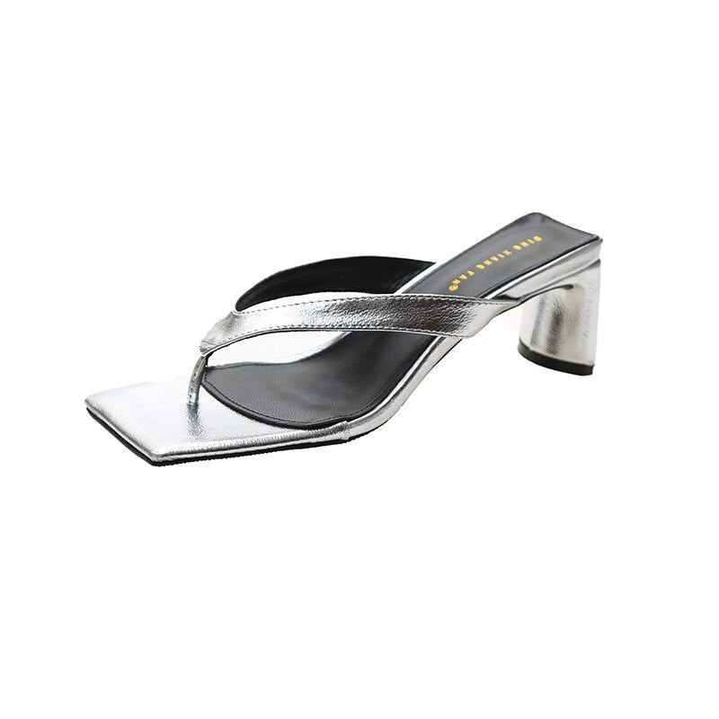 2021Sexy Clip Toe High Heels Slippers Women Silver White Square Toe Party Slides Women Fashion Square Heels Sandals Female