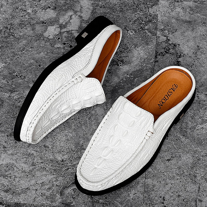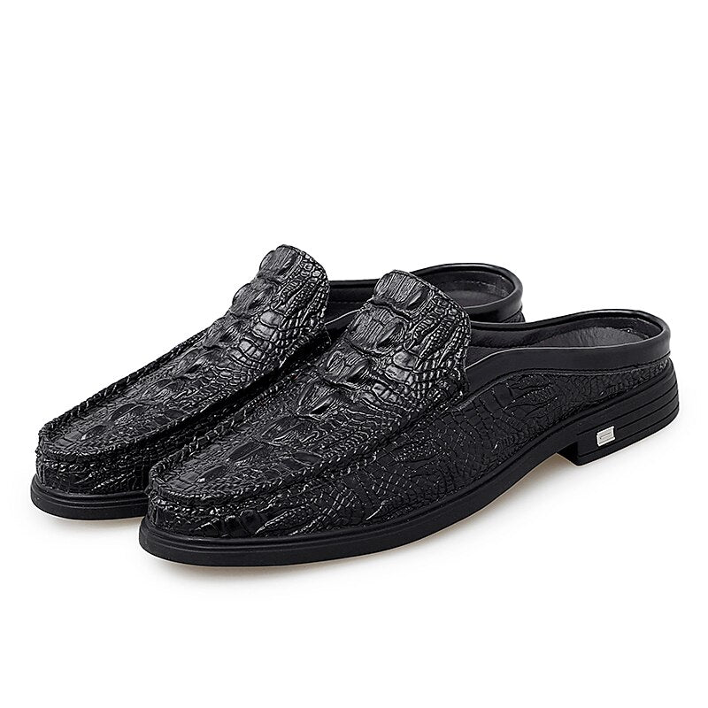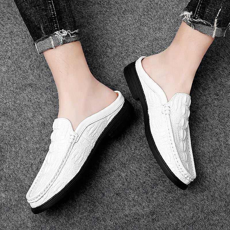 2022 Black Half Shoes for Men Leather Shoes Men Mules Casual Shoes Men Fashion Social Big Size Mocassin Elegantes Walking Shoes