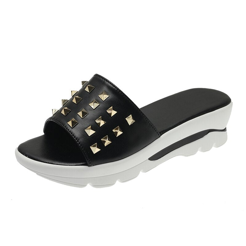 2022 Large Size Rivets Women's Slippers Platform Sandals Summer Women's Shoes Flat Slippers Women's Casual Beach Women's Shoes