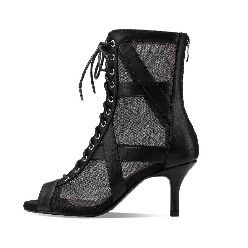 2022 New Latin For Dancing Shoes High Top Women Ballroom Boots Soft Soles Ladies Tango Salsa Mesh Dance Shoes High Heels Outdoor
