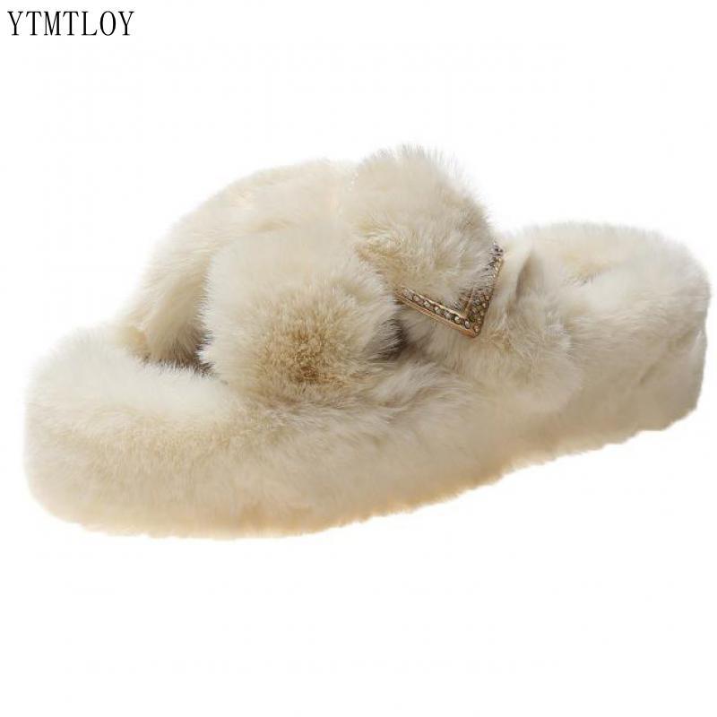 2022 New Women Fur Slippers Winter Slides Fluffy Furry Sandals Flip Flops Home Hot Ladies Plush Shoes Ytmtloy Indoor Zapato Muje