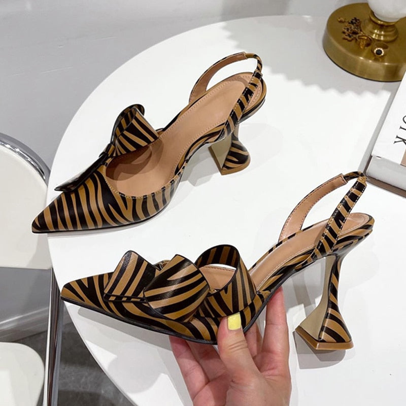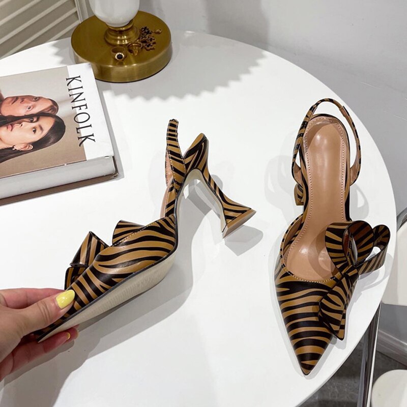 2022 New Zebra Pointed Toe Women Pumps Fashion Butterfly-knot Slingback High Heels Sandals Strange Style Wedding Bride Shoes
