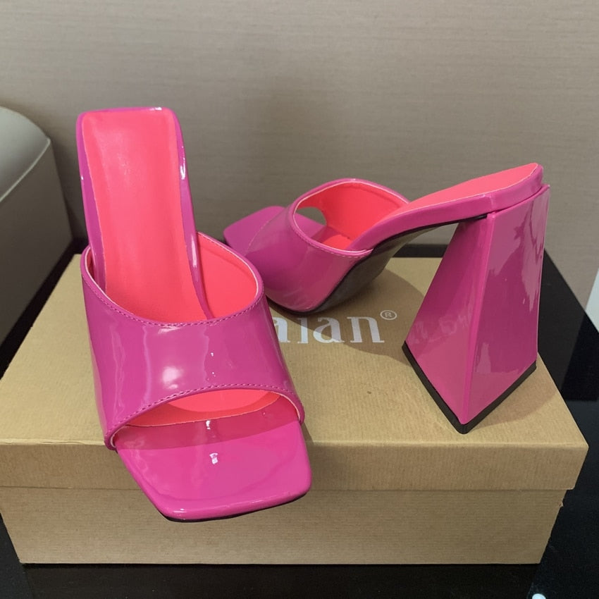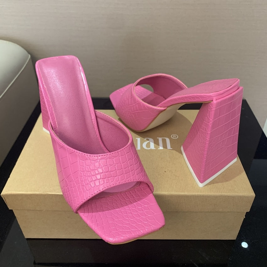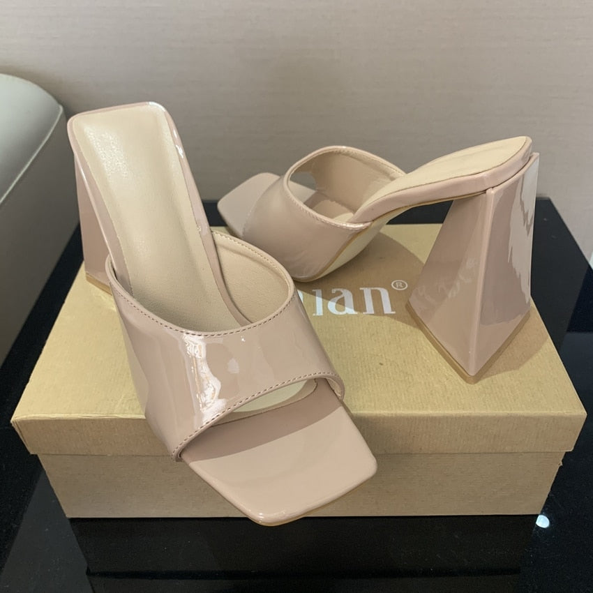 2022 Summer sandals women triangle thick mules high heels slippers sandals flip flops square toe slides party shoes woman