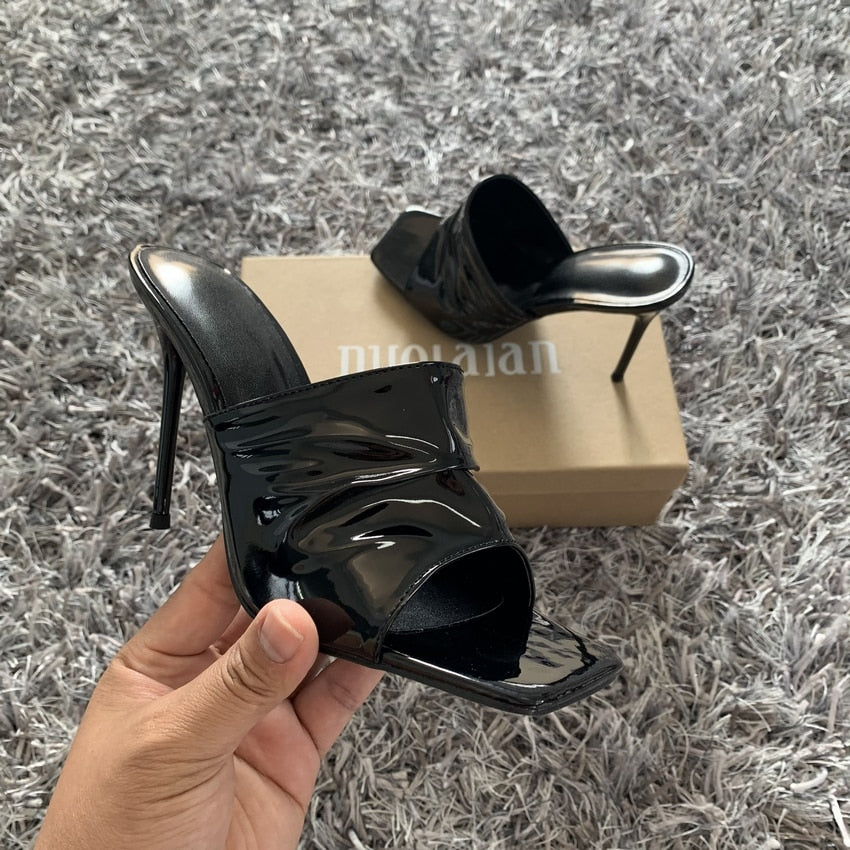2022 Summer Women Sandals Square Toe Ladies Heel Mules Sexy Thin High Heels Sandals Slippers Female Fashion Woman Shoes