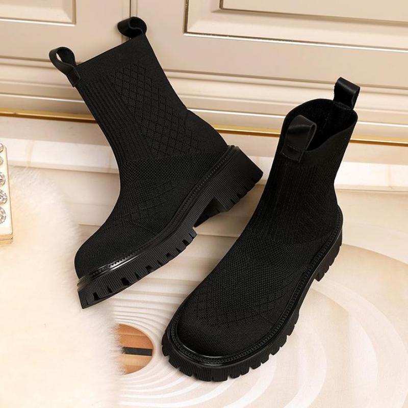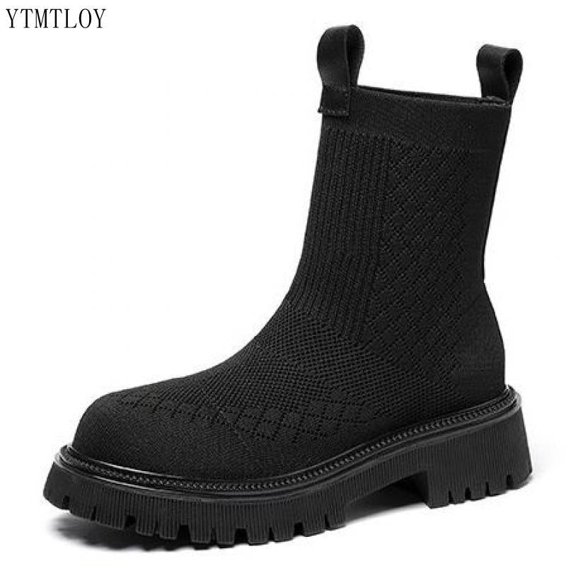 2022 Women Black Sock Female Elastic Mesh Plush Warm Platform Vintage Leisure Comfort Shoes Size 35-40 Ytmtloy Chelsea Boots