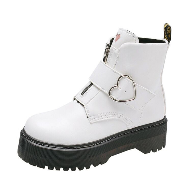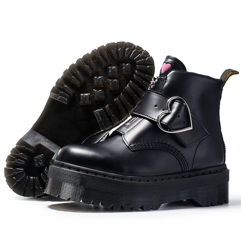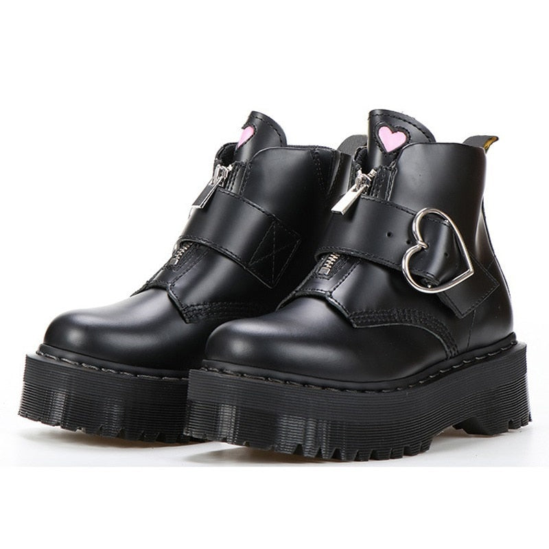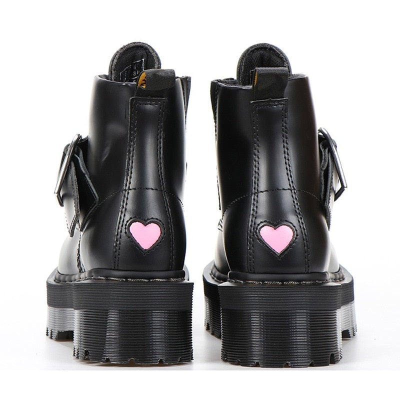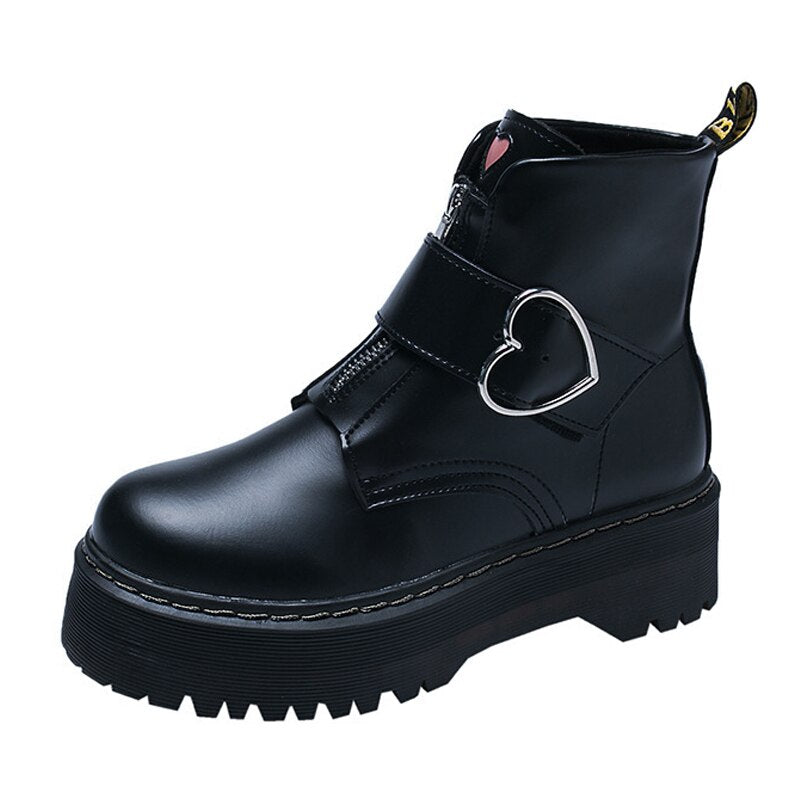 2022 Women Boots Motorcycle Shoes Winter Platforms Ankle Boots Martin Female Chunky Leather Gothic Booties Woman Square Heels
