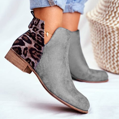 2022 Women Retro Ankle Boots Woman Vintage Leopard Low Heels Women's Zip PU Leather Ladies Shoes Female Short Boots botas mujer