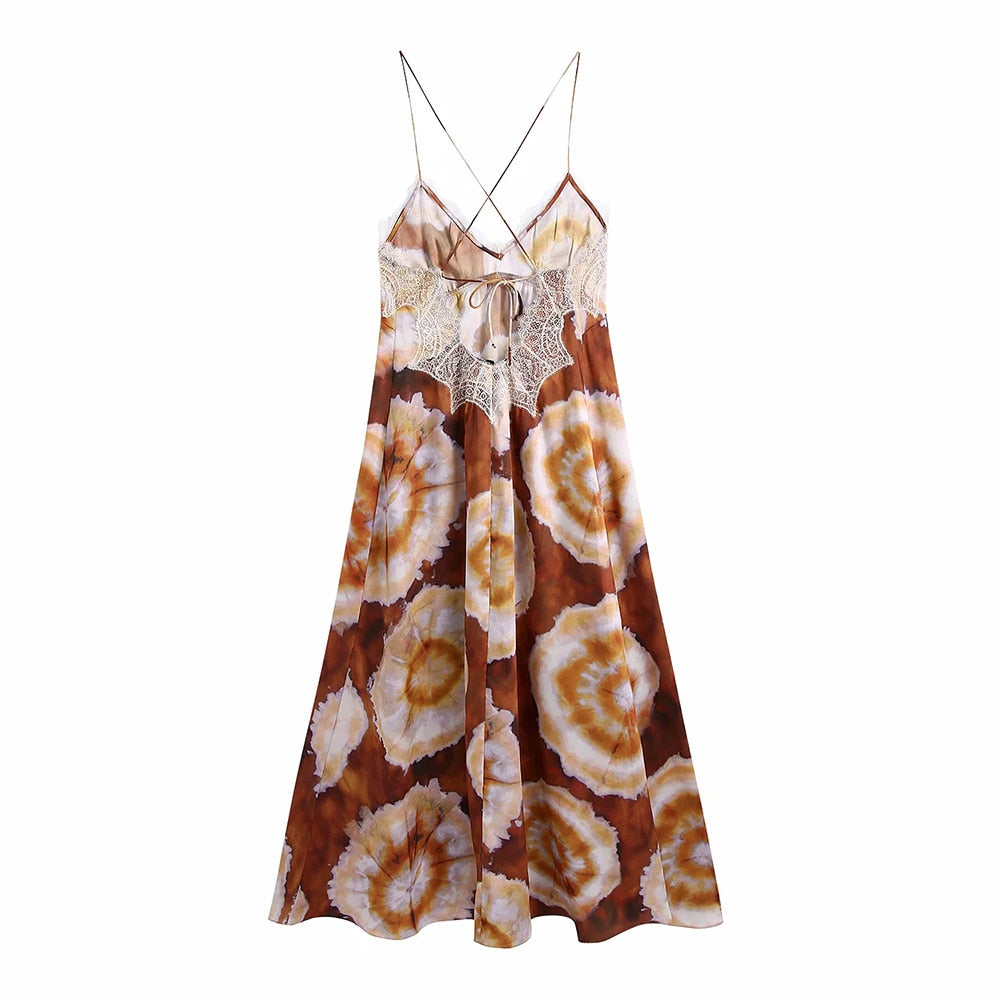 Back to school 2022 Summer Women Vintage Sexy Print Lace Stitching Backless Dress Female Fashion Party Casual Slim Sling Mini Dresses