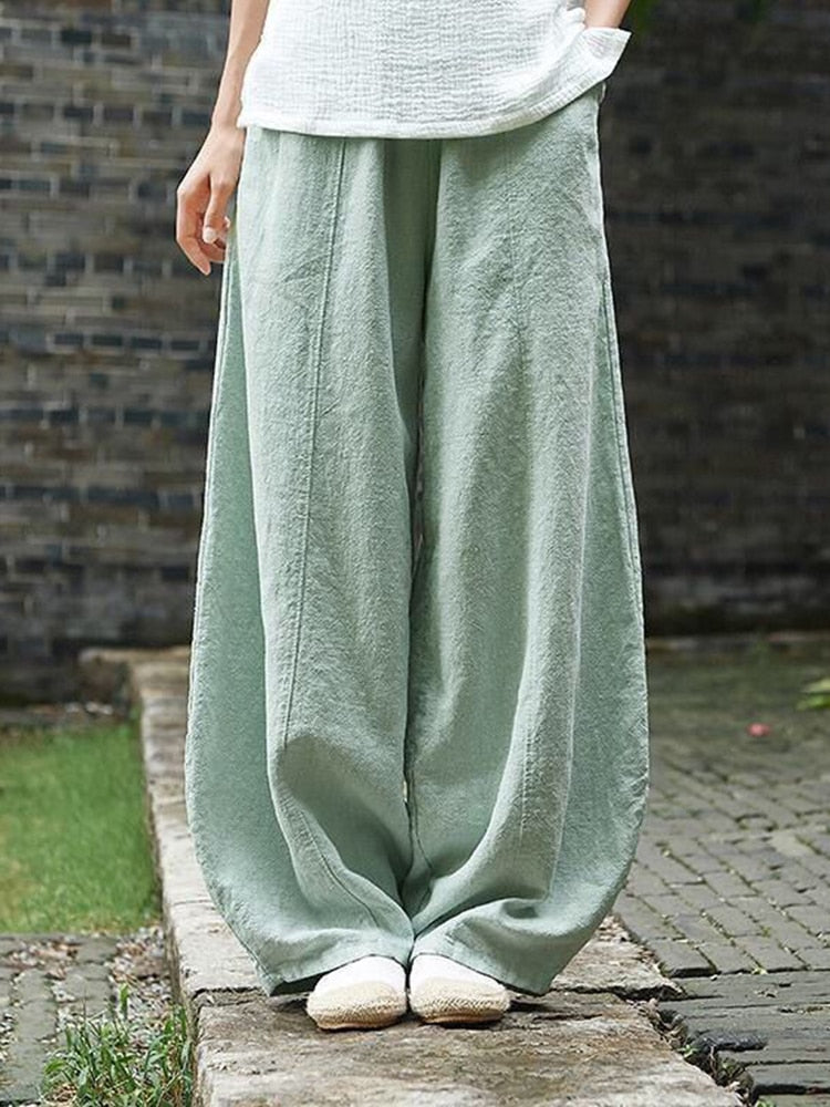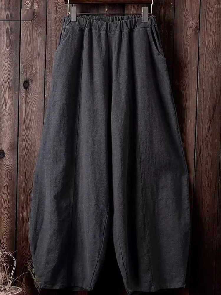 Back to school  Vintage Harajuku Cotton Linen Bloomers Wide Leg Pants Elegant Solid Loose Trouser Casual Streetwear Elasitic Waist Oversize Pant