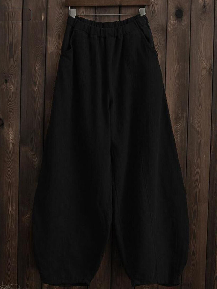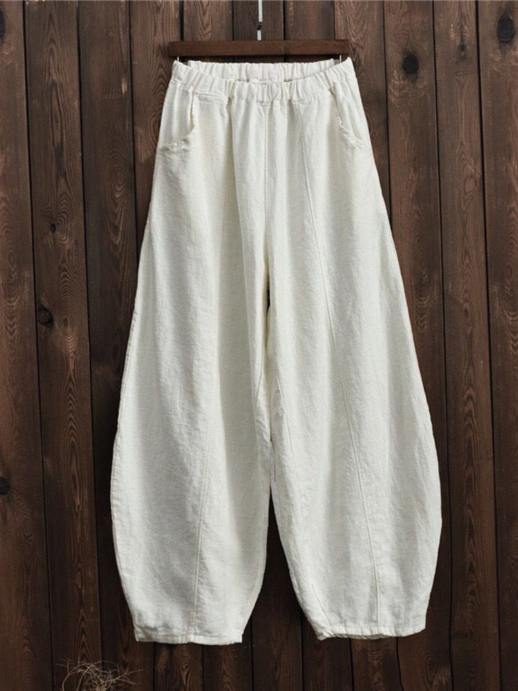Back to school Vintage Harajuku Cotton Linen Bloomers Wide Leg Pants Elegant Solid Loose Trouser Casual Streetwear Elasitic Waist Oversize Pant