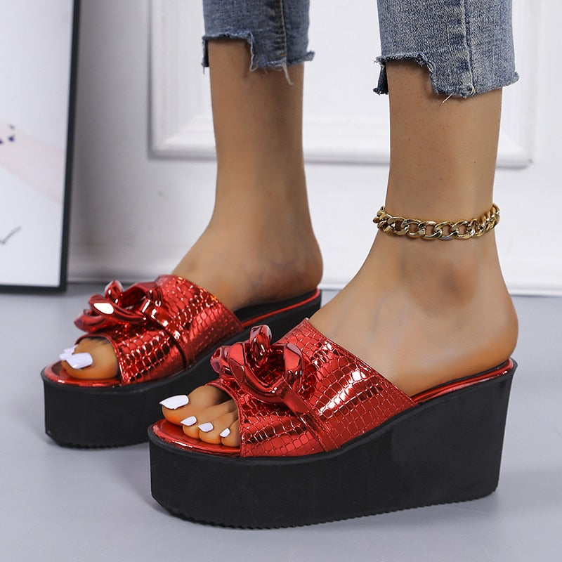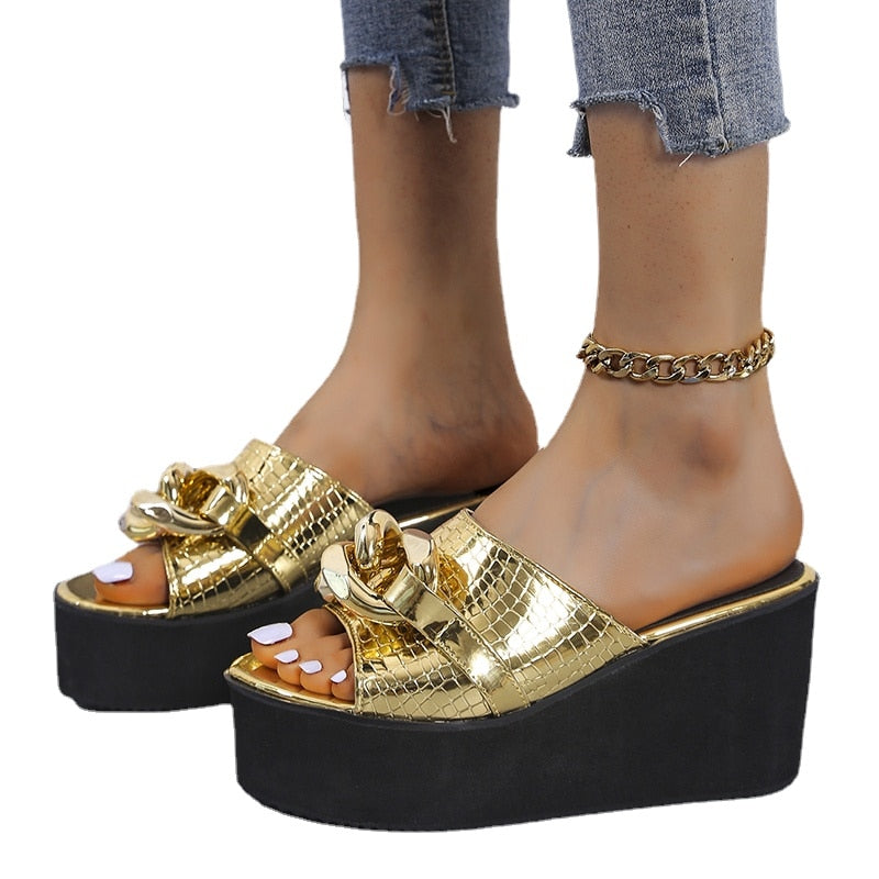 Best Sale Top Cowhide Platform Summer Shoes Women Sandals Slippers 2021 Fish Head Wedges Sandals High Heels Shoes Summer Sandals