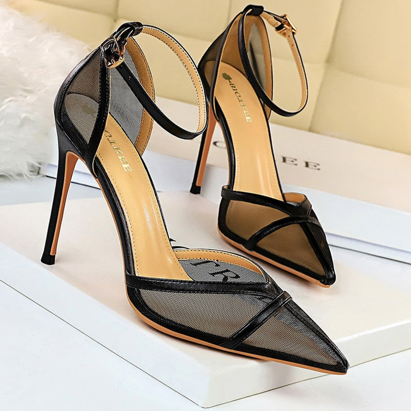 BIGTREE Shoes 2022 Spring Women Pumps High Heels Black Sexy Party Shoes Mesh Hollow Stiletto Heels Sandals Ladies Shoes Size 43