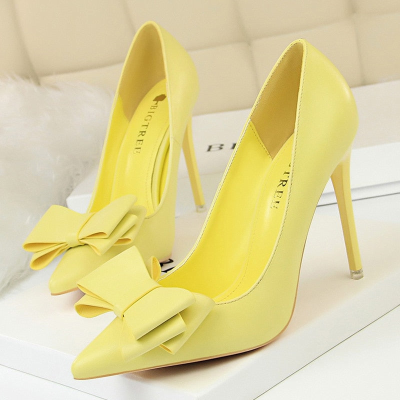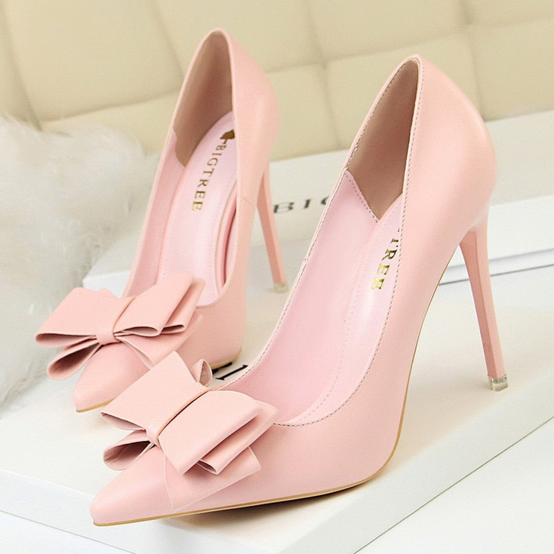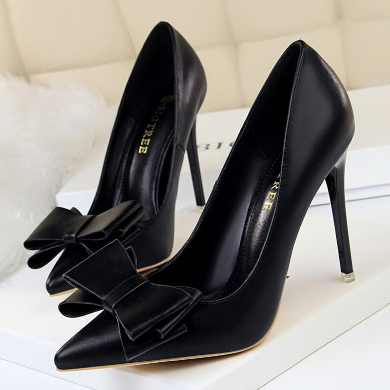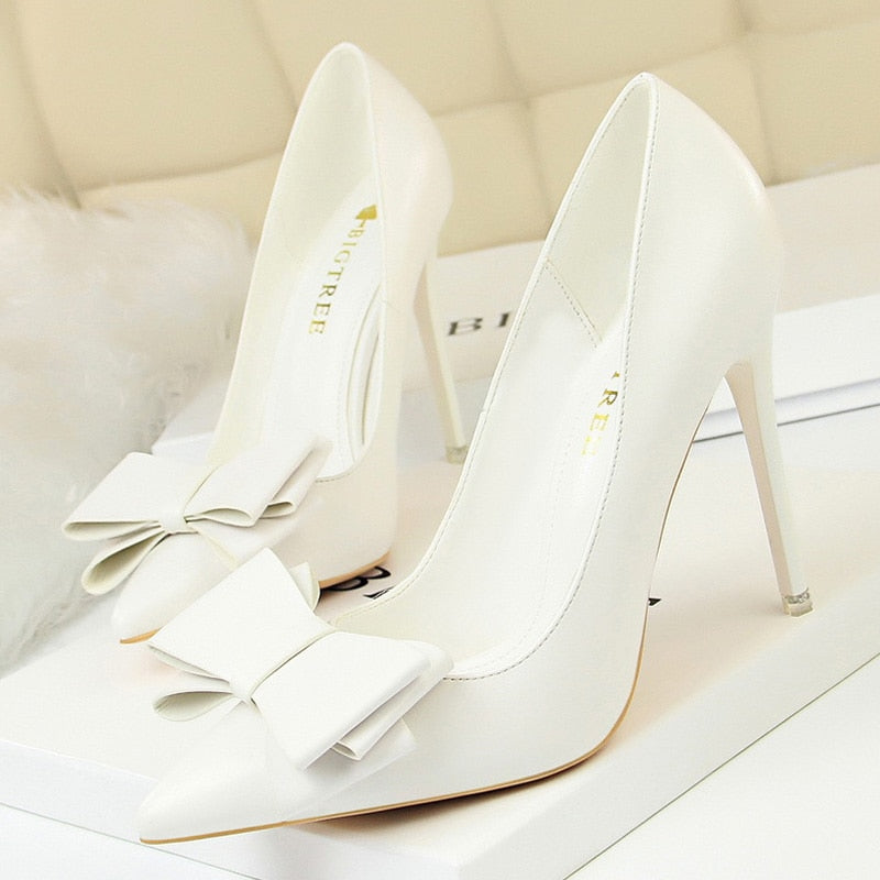 BIGTREE Shoes Bow-knot Pumps Women High Heels 2022 Fashion Women Heels Lady Stiletto Shoes Wedding Shoes Classic Pumps Footwear