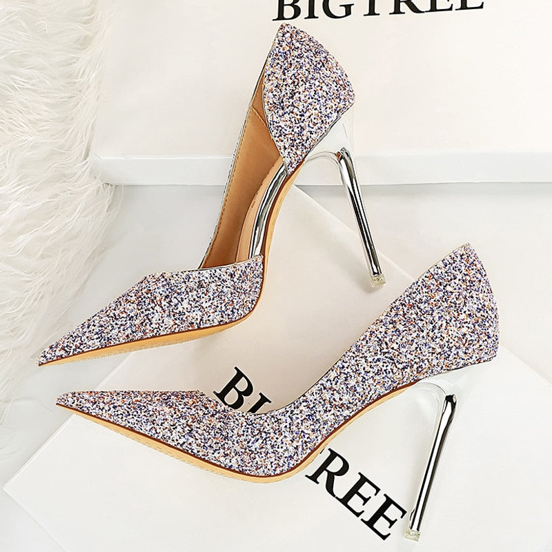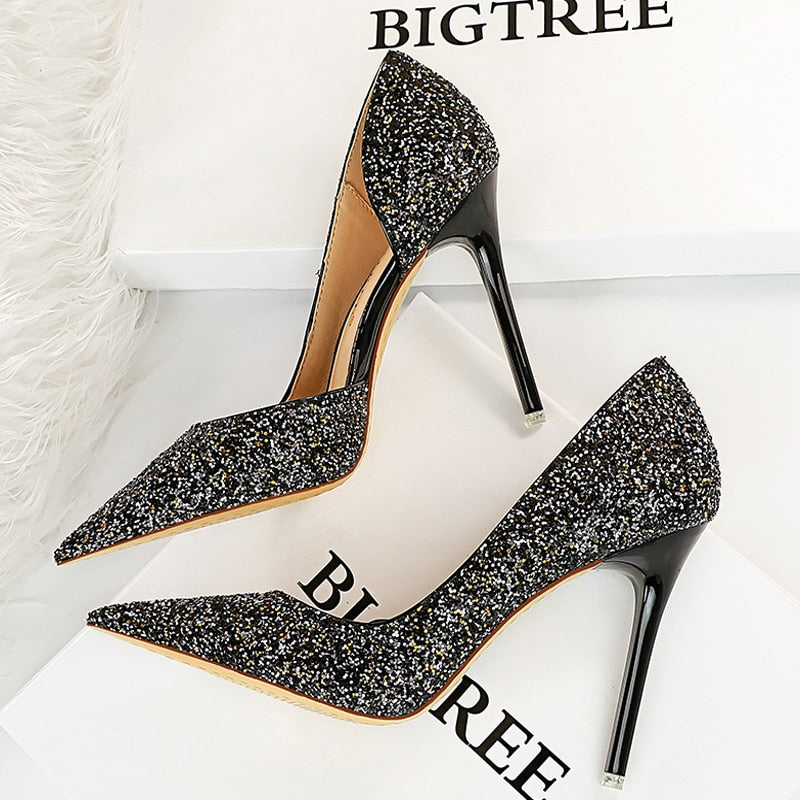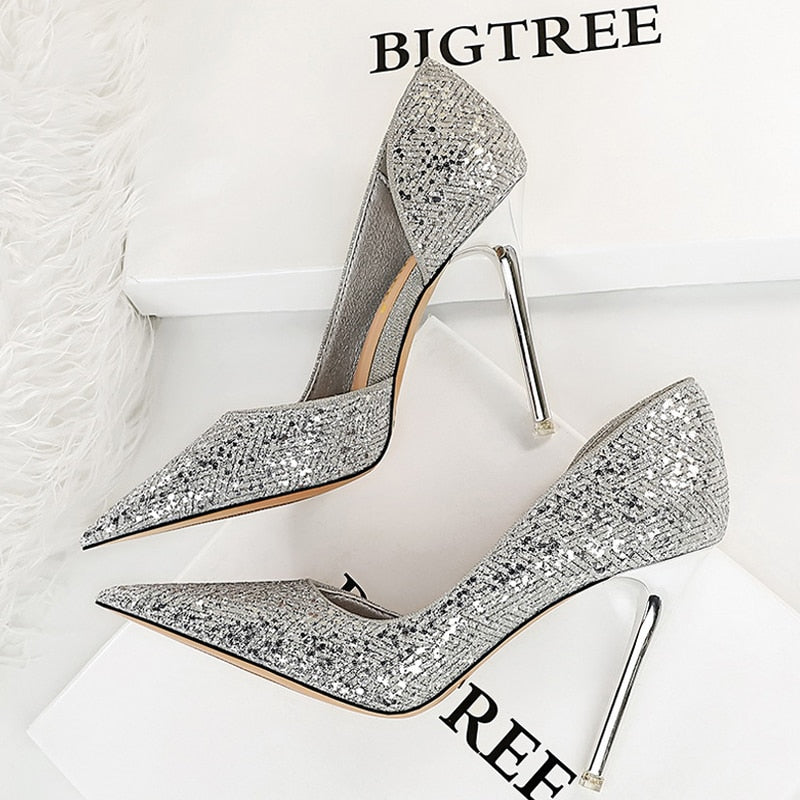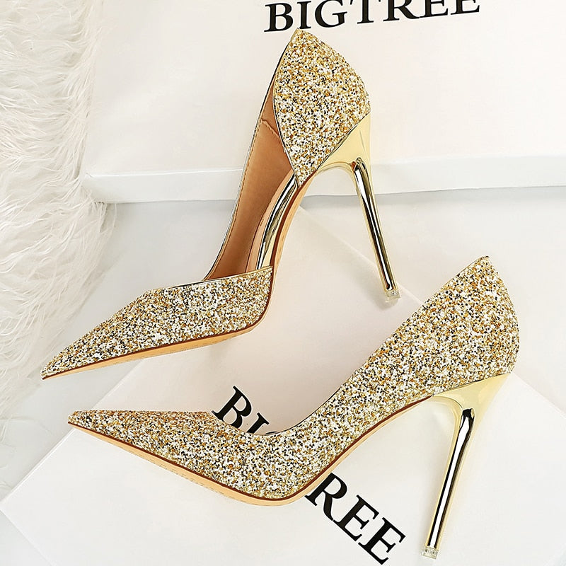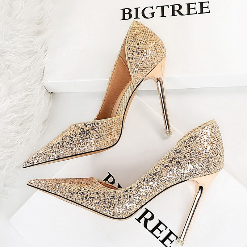 BIGTREE Shoes Gold Sliver Woman Pumps Sequin Cloth Wedding Shoes Sexy High Heels 2022 New Pumps Women Stiletto Heels 10.5 Cm