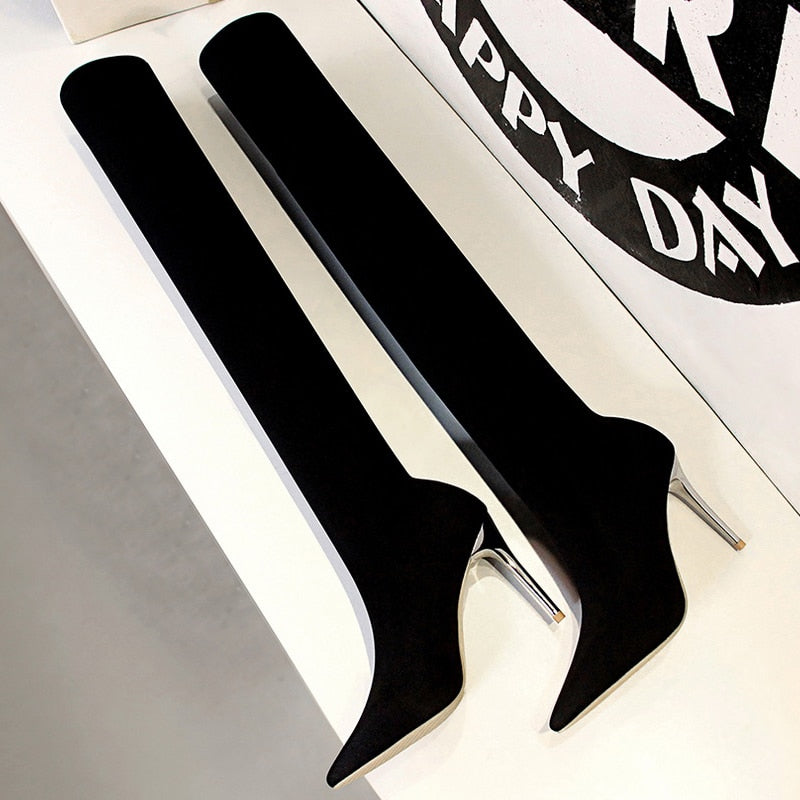 BIGTREE Shoes Stretch Thigh High Boots Women Over The Knee Boots Stiletto Heels Women Long Boots Autumn Winter Boots Cuissardes