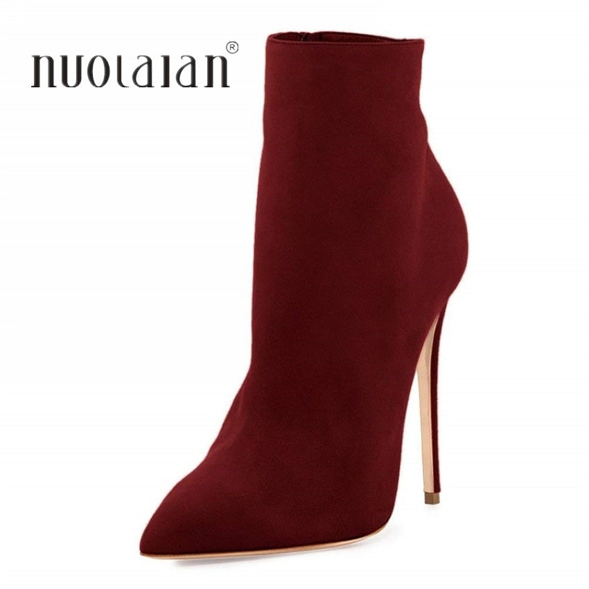 Brand Fashion Women Ankle Boots Zip Pointed Toe Footwear 10CM High Heels Female Boots Party Shoes Women 2020 New Winter