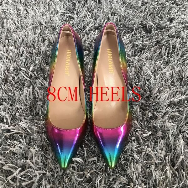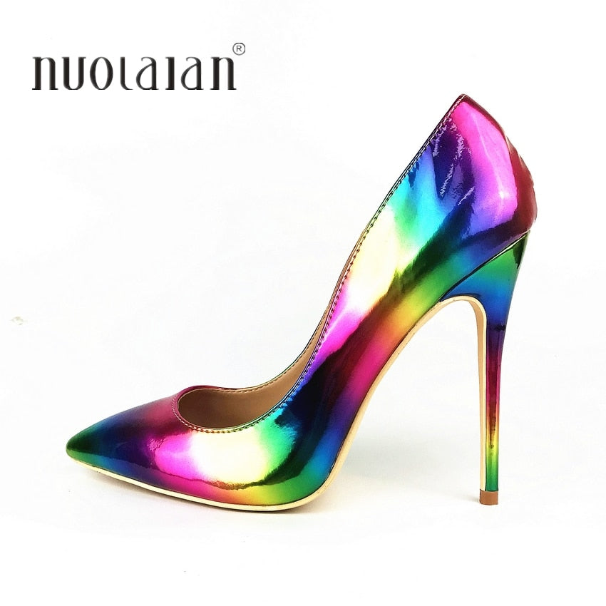 Brand fashion Women Shoes Colorful Rainbow Printed Woman Shoes Sexy Stilettos High Heels 12cm/10cm/8cm Pointed Toe Women Pumps