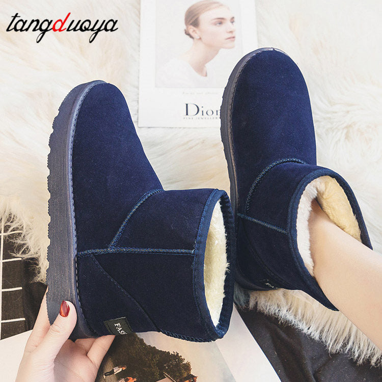 Brand Women's Shoes Australian Boots Winter Footwear Round Toe Flat Heel Boots-Women Fashion Snow Low 2022 Ladies Ankle Cotton