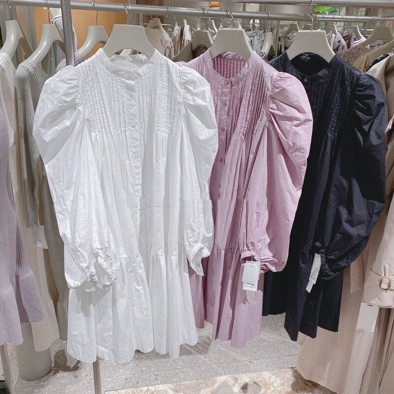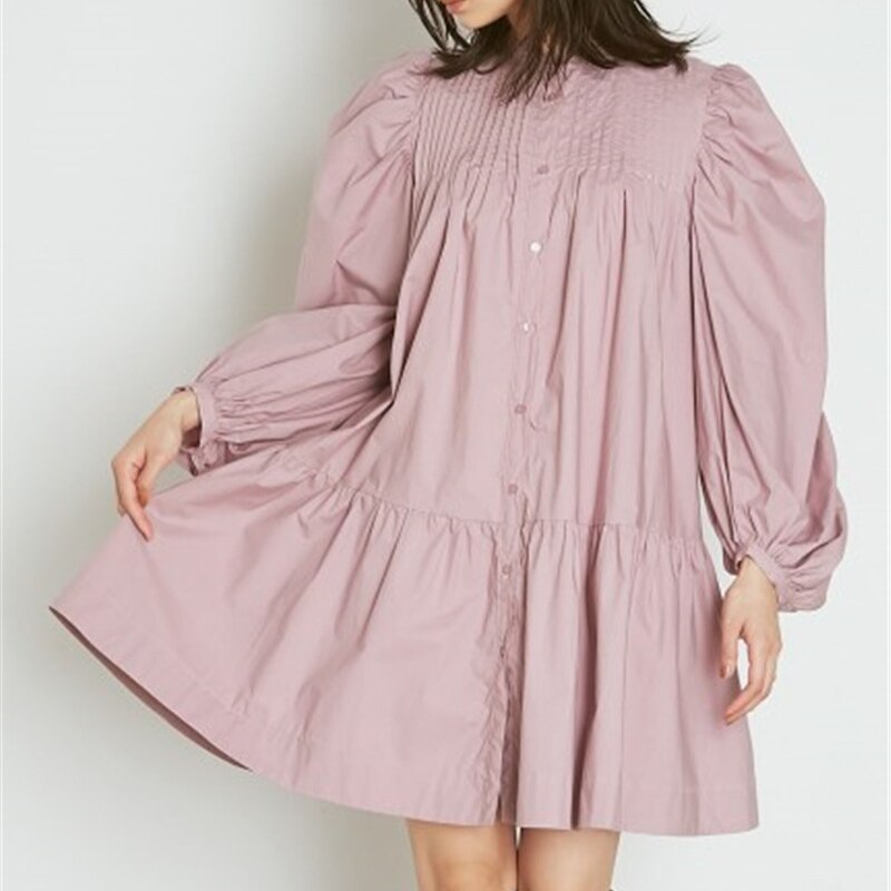 Christmas Gift Kuzuwata Fresh Sweet Single Breasted Women Dress 2021 Spring New Japan Style Puff Long Sleeve Vestidos O Neck Shirts Dresses