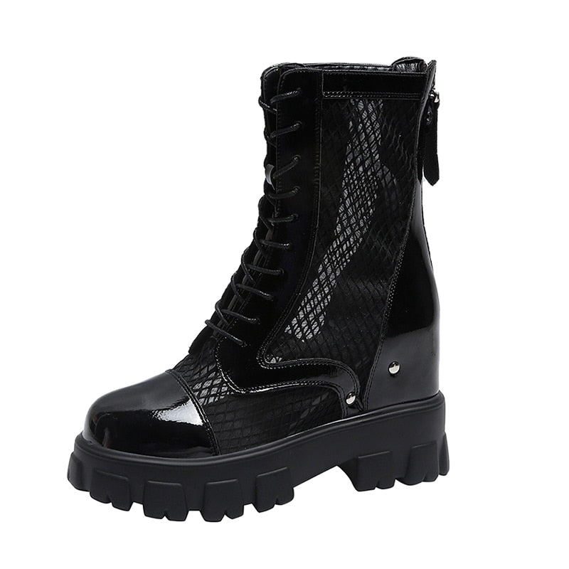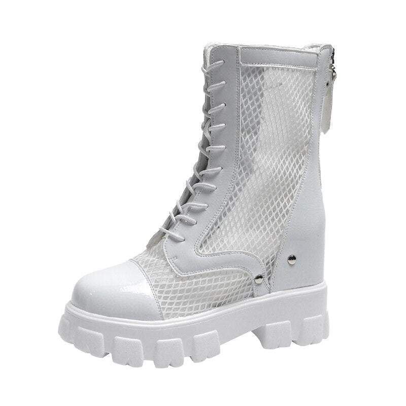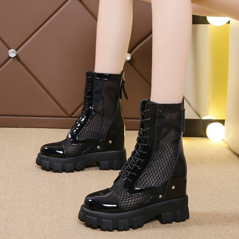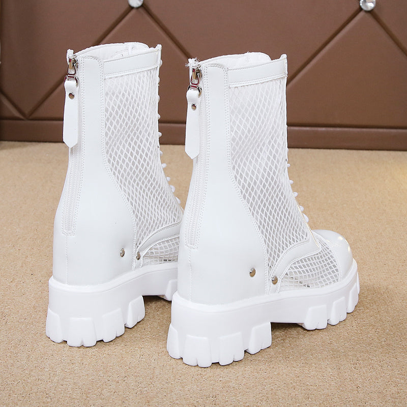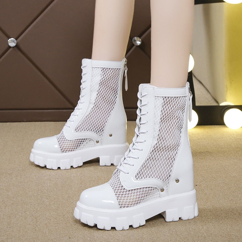 Chunky Platform Ankle Boots For Women Breathable Mesh Summer Shoes Woman Thick Sole Height Increasing Short Botas Mujer