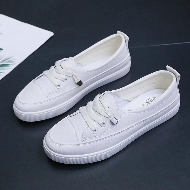 Comemore 2021 New Moccasins Woman Summer Loafers White Flat Rubber Sole Vulcanize Sports Flat Shoes Female Pu Leather Sneakers