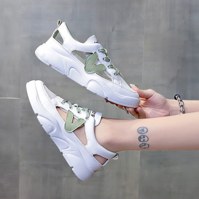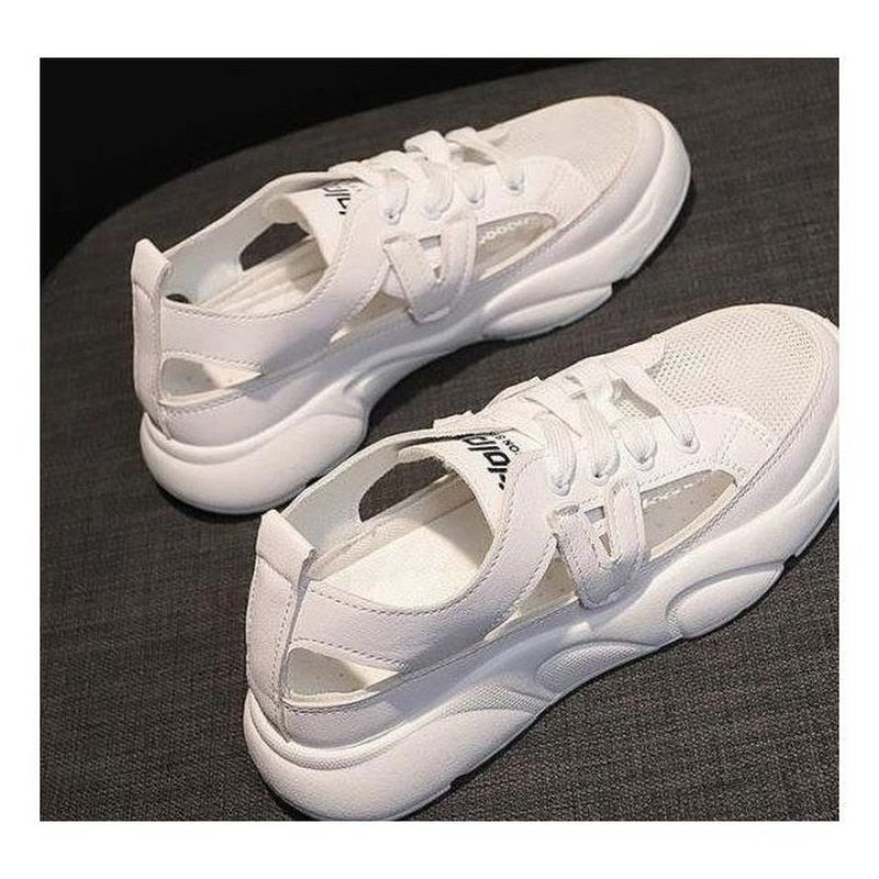 Comemore 2021 New Spring White Women's Shoes All-match Casual Leisure Pump Sports Sandals Summer Flat Hollow Out Mesh Sneakers