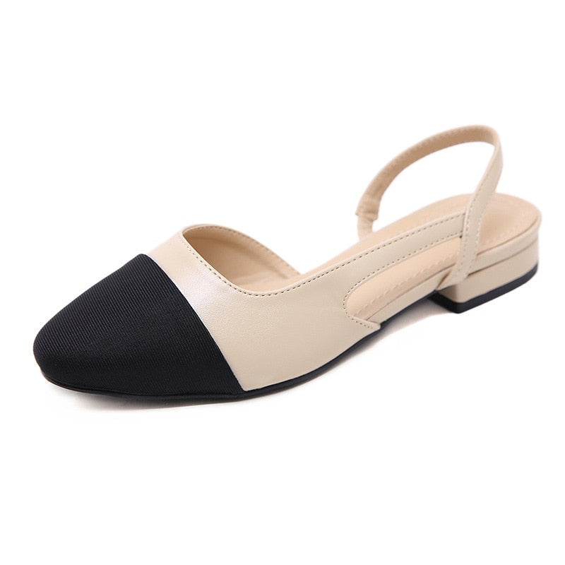 Comemore 2021 Summer Sandals Women Slingbacks High Heels Fashion Low Thick Medium Heel Shoes Leather Elegant Pumps Ladies Luxury
