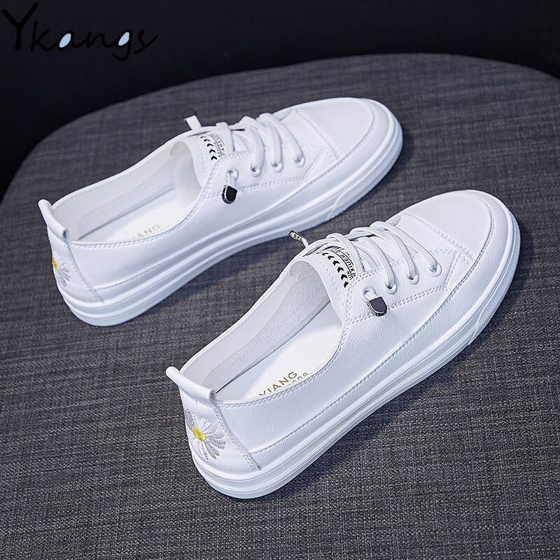 Comemore 2022 New demi-season slip-on Leather Loafers White Autumn Sneakers For Women spring Casual Fashion Ladies Flats Shoes