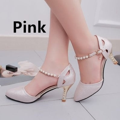 Comemore 2022 Women Comfortable Stilettos 6cm Scarpins Pumps Lady Middle Heel White Wedding Bridal High Heels Pink Mules Shoes
