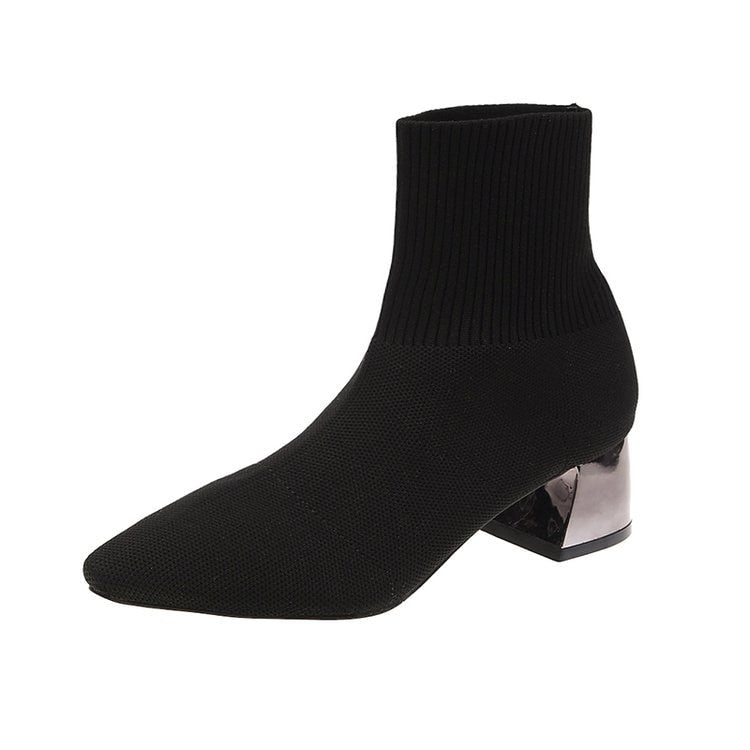 comemore Autumn Winter Women's Knit Elastic Socks Boots Pointed Toe Chunky Heel Boots Black Fashion Ankle Chelsea Boots Shoes