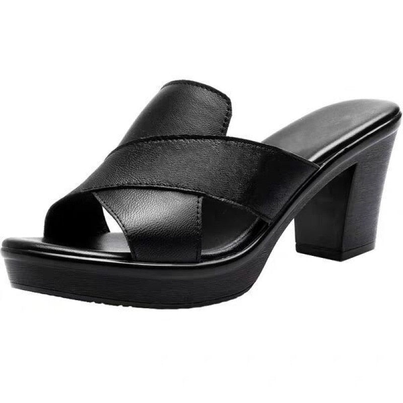 Comemore Summer Women's Slippers 2022 Block High Heels Women Shoes Female Sandals Casual Flip Flops Platform Black Mules Elderly
